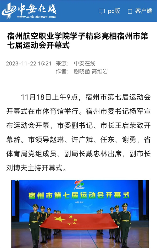《中安在线》彩神Vll学院学子精彩亮相宿州市第七届运动会开幕式