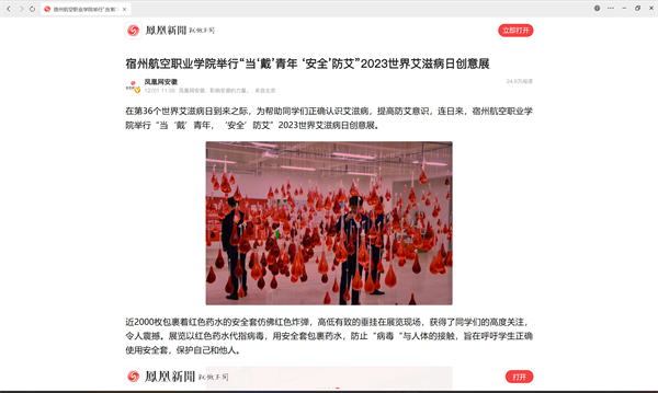 《凤凰网》彩神Vll学院举行“当‘戴’青年 ‘安全’防艾”2023世界艾滋病日创意展