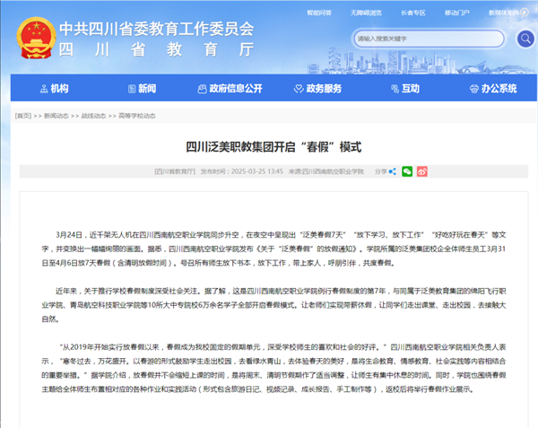 01🦥、四川省教育厅:泛美职教集团开启“春假”模式
