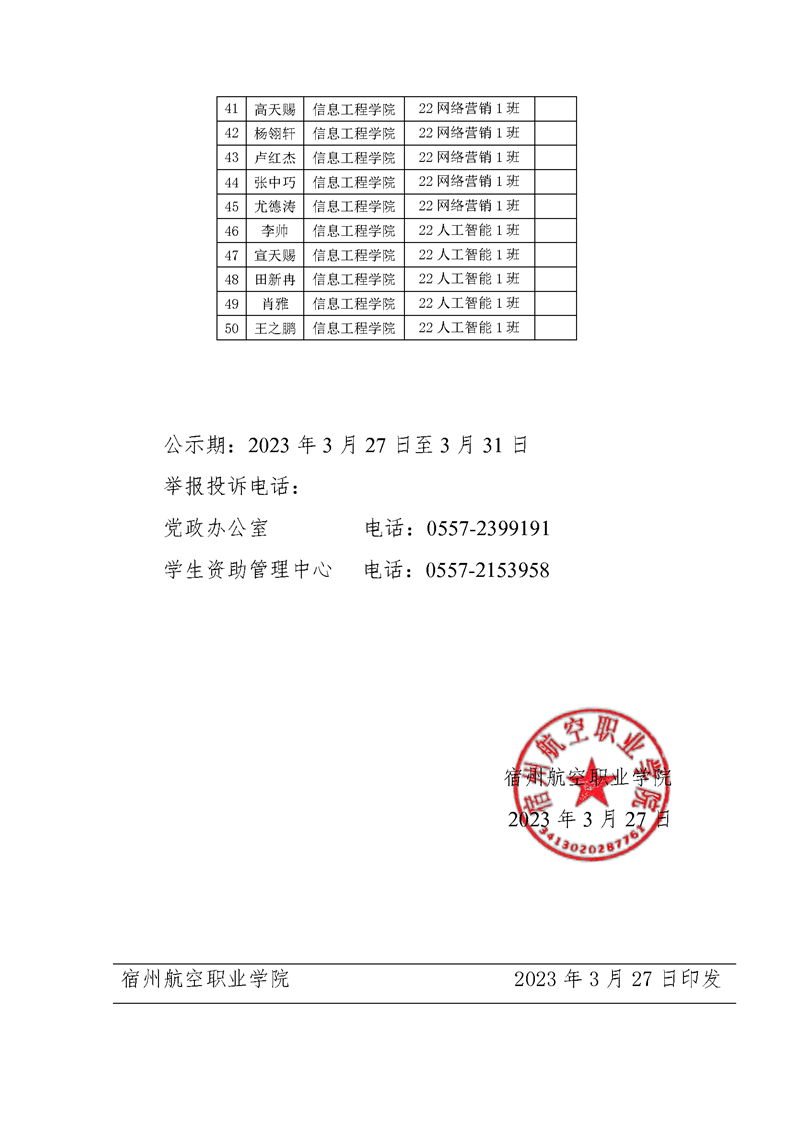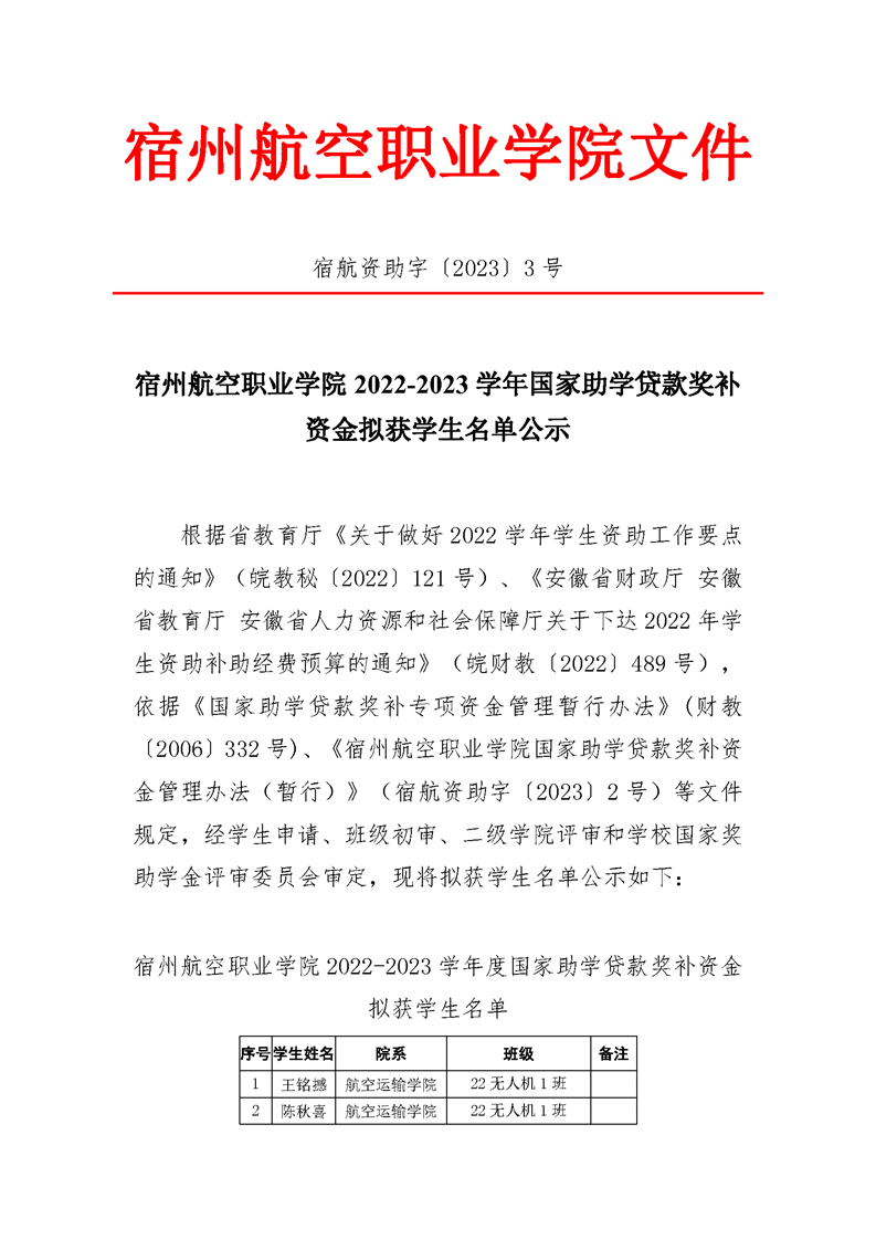 彩神Vll学院2022-2023学年国家助学贷款奖补资金拟获学生名单公示