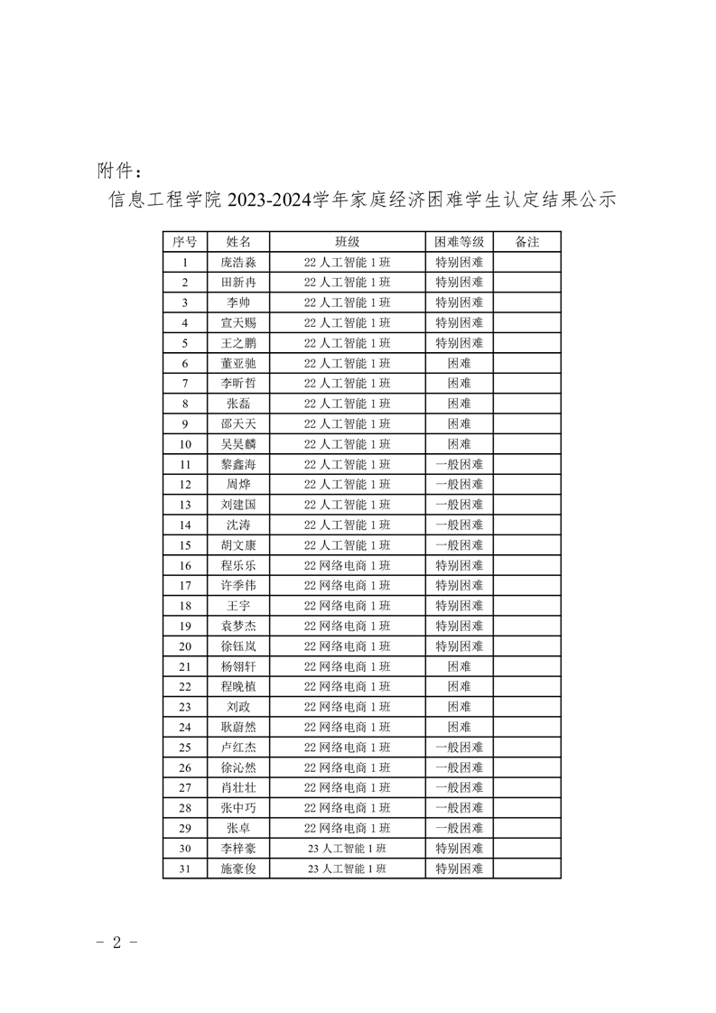 彩神Vll学院2023-2024学年度信息工程学院家庭经济困难学生认定结果公示