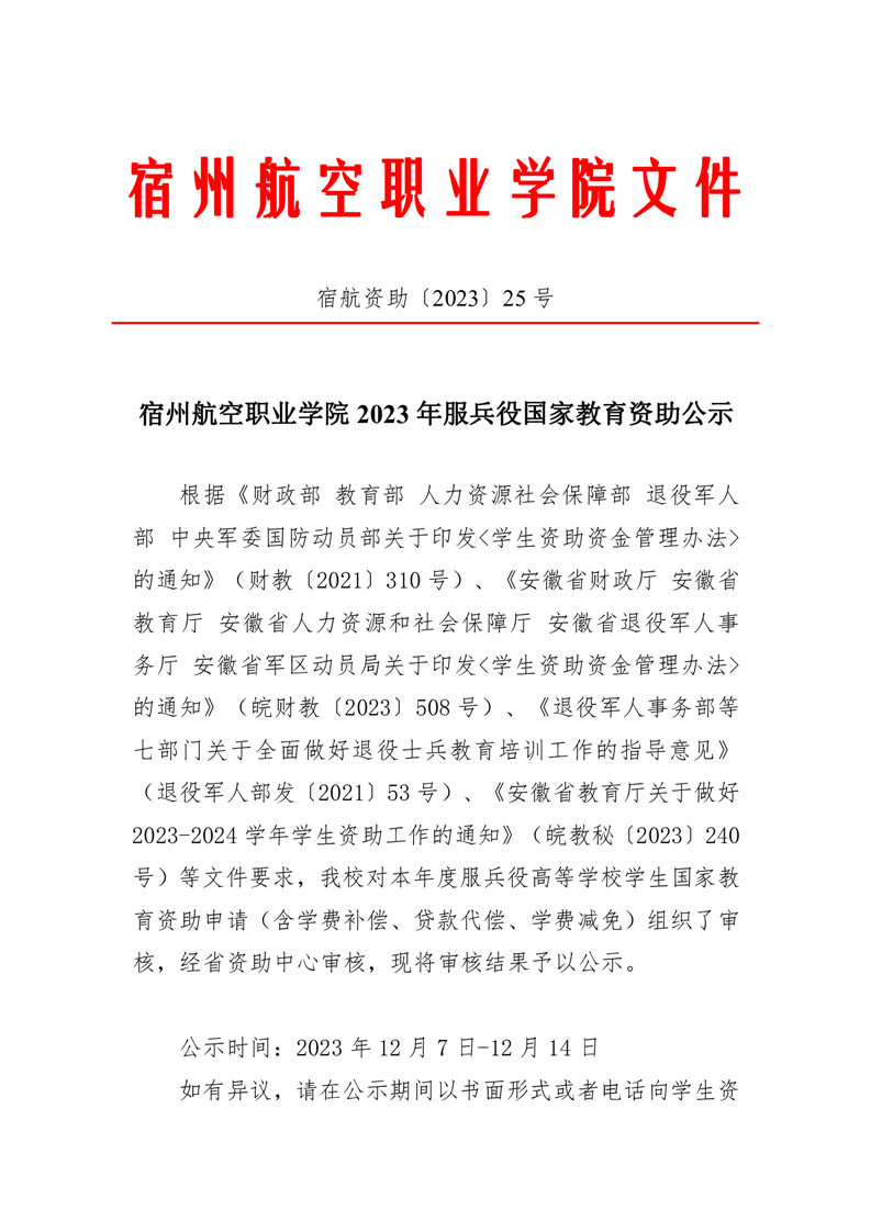 彩神Vll学院 2023 年服兵役国家教育资助公示