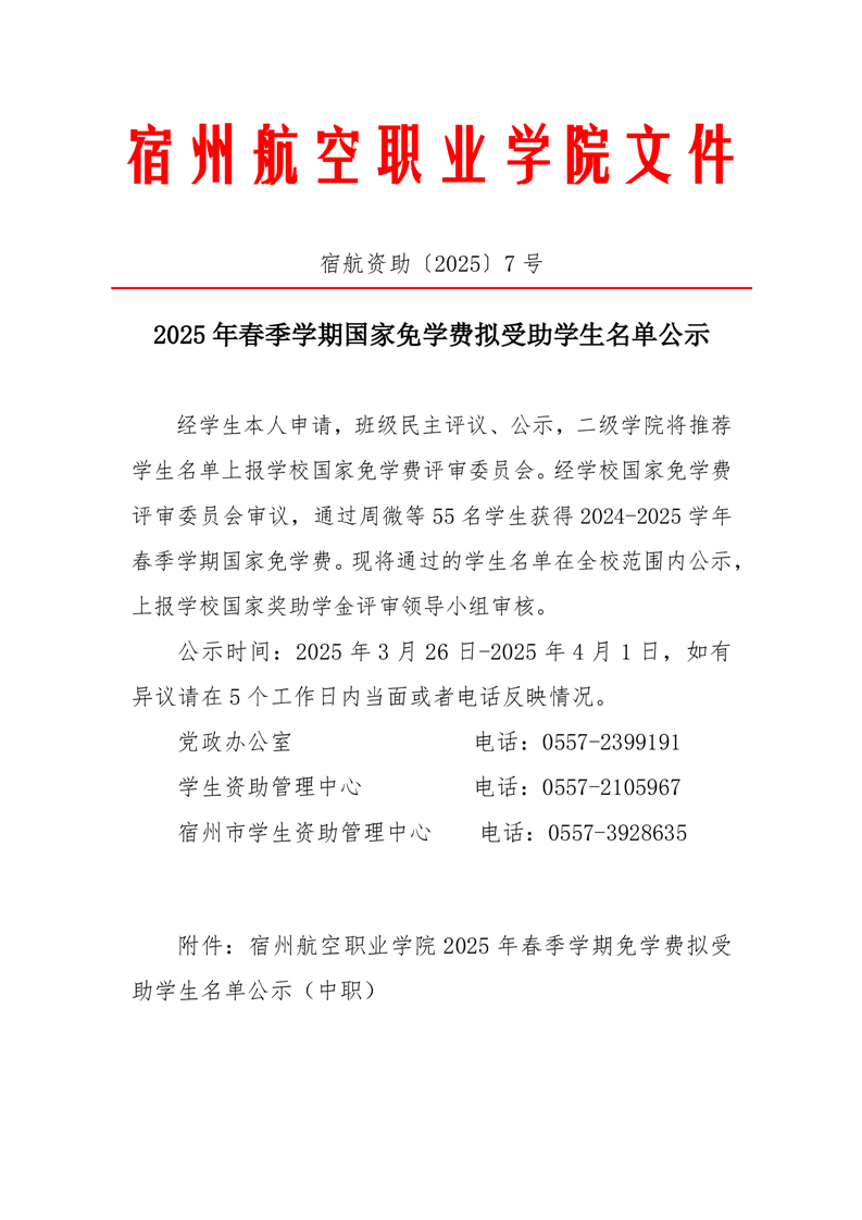 关于2024-2025学年春季学期中职国家助学金拟受助学生名单的公示