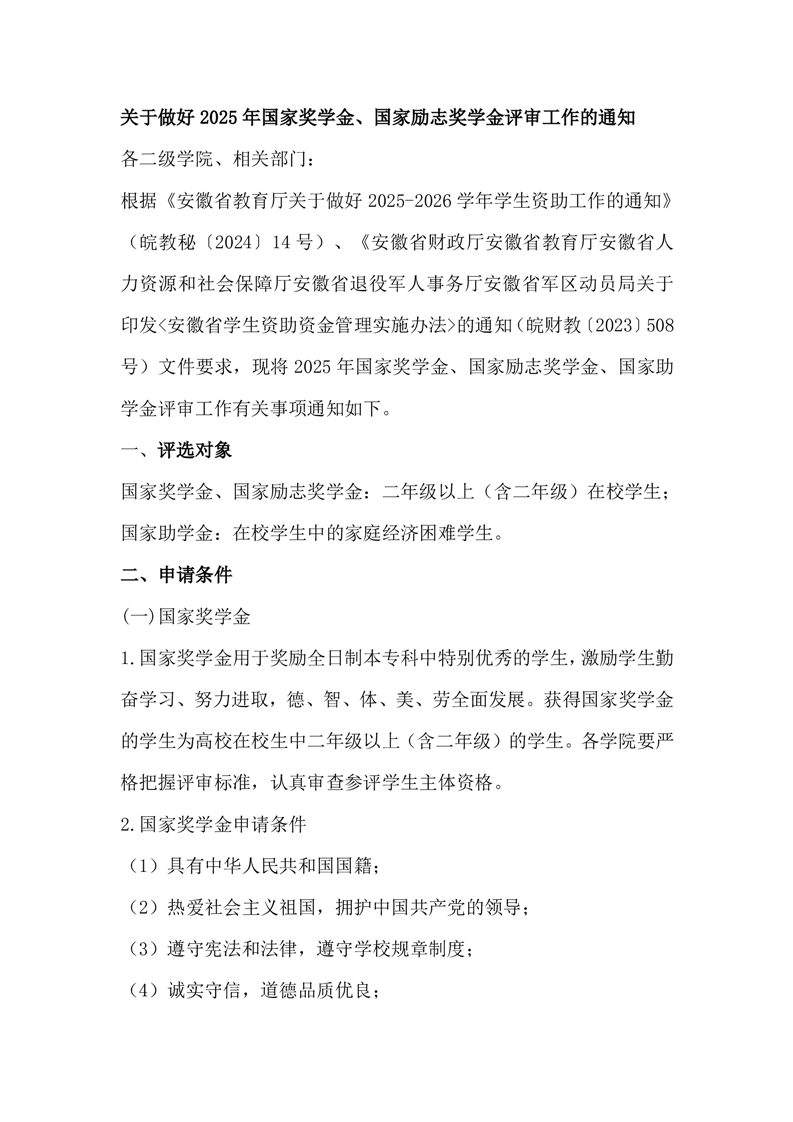 关于做好2025年国家奖学金、国家励志奖学金评审工作的通知