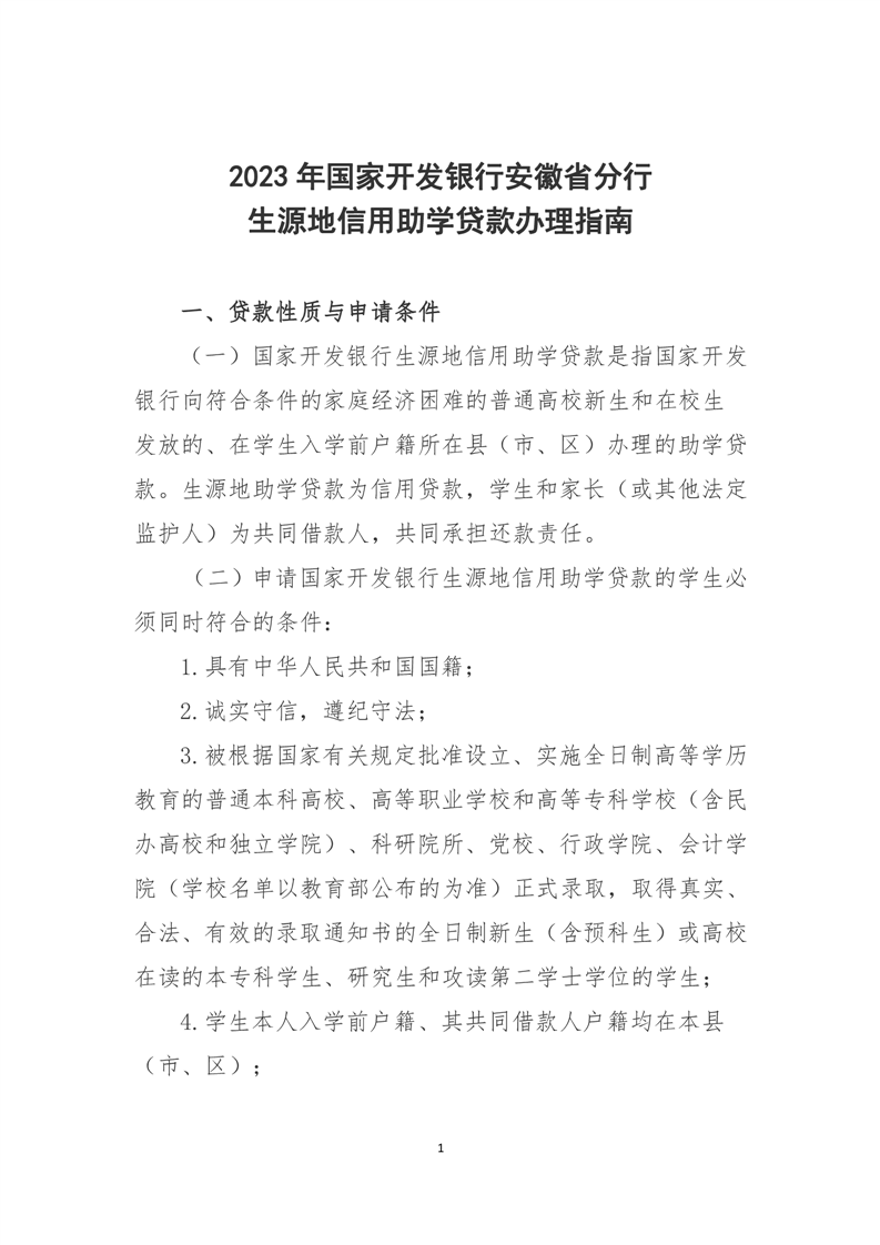 2023年国家开发银行安徽省分行 生源地信用助学贷款办理指南