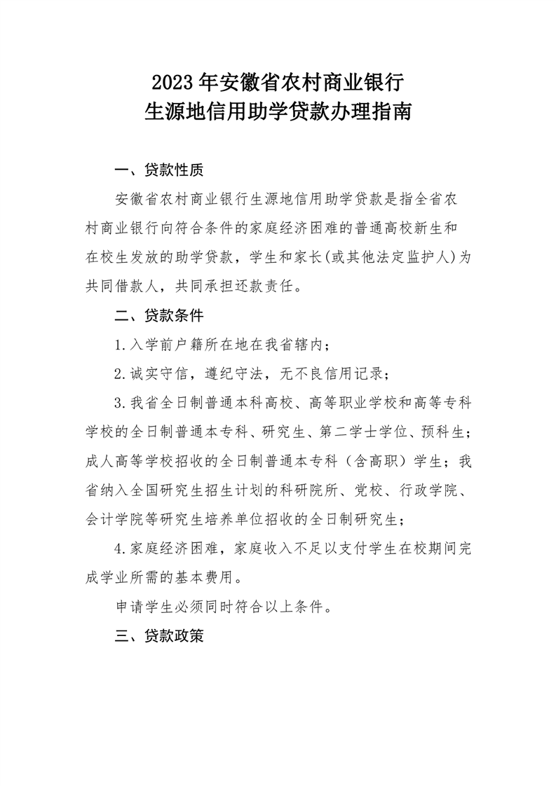 2023年安徽省农村商业银行 生源地信用助学贷款办理指南