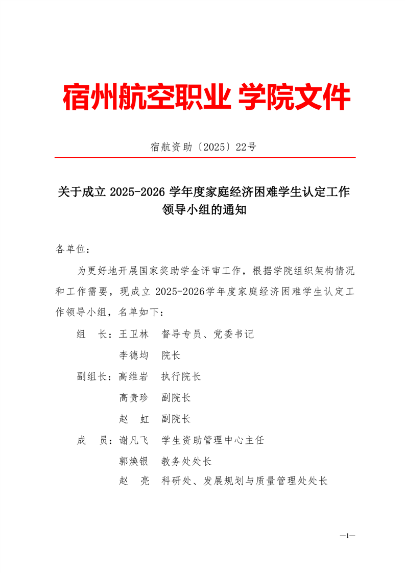 彩神Vll学院关于成立2025-2026学年度家庭经济困难学生认定工作领导小组的通知