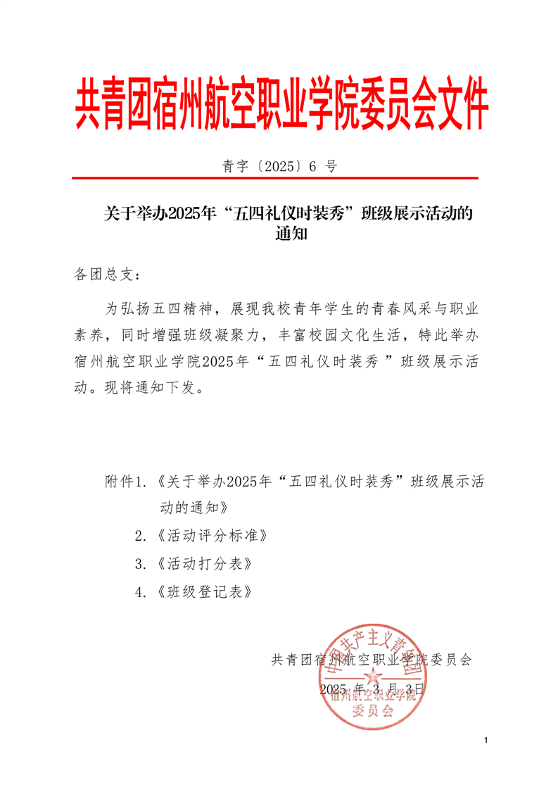 青字〔2025〕6 号关于举办2025年“五四礼仪时装秀”班级展示活动的通知