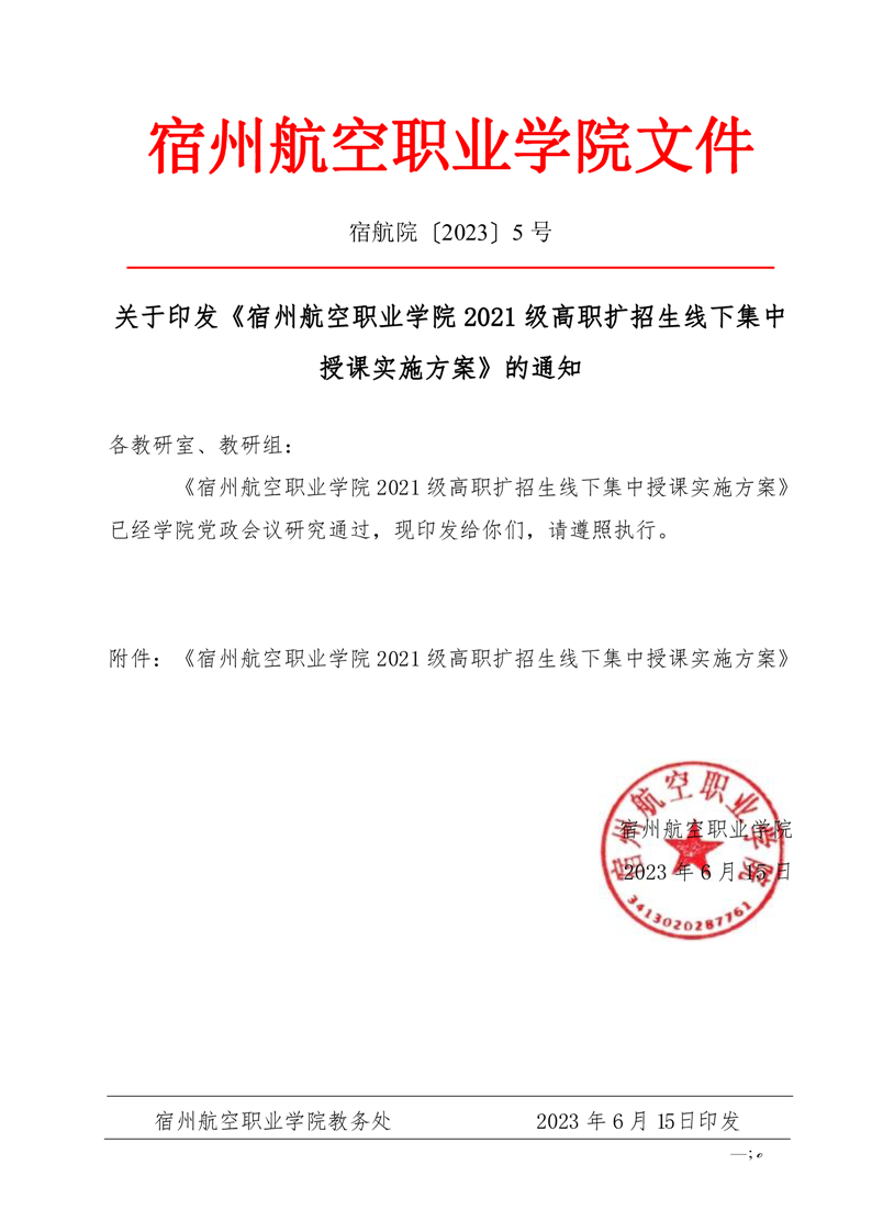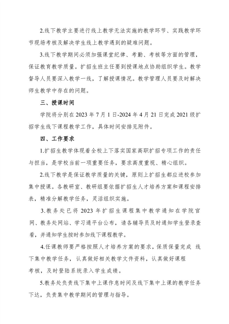 关于印发《彩神Vll学院2021级高职扩招生线下集中授课实施方案》的通知