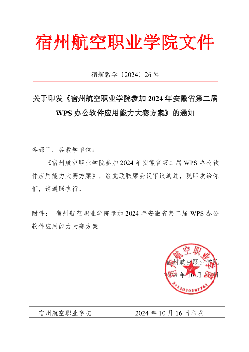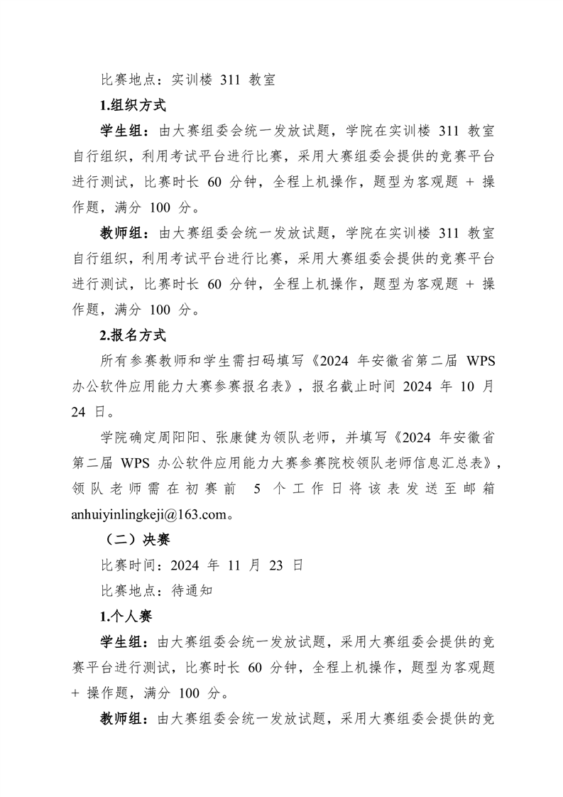关于印发《彩神Vll学院参加2024年安徽省第二届WPS办公软件应用能力大赛方案》的通知