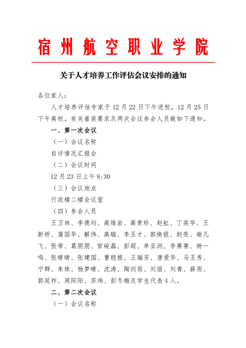 关于人才培养工作评估会议安排的通知