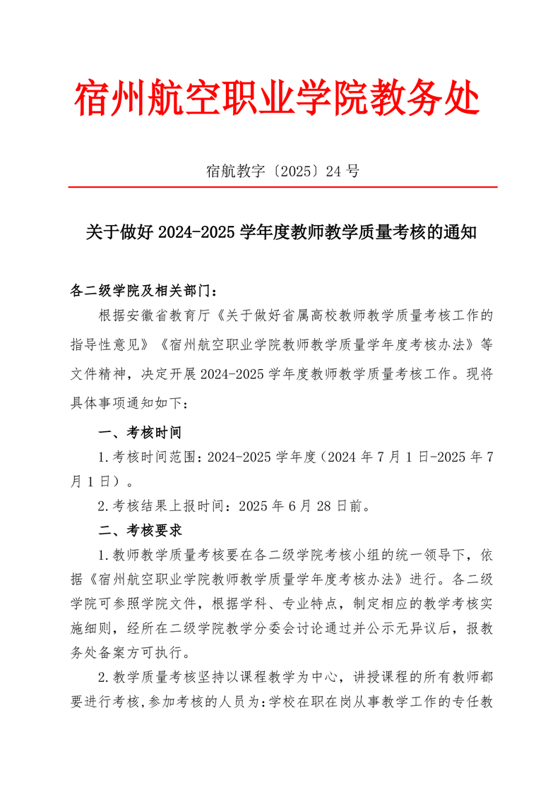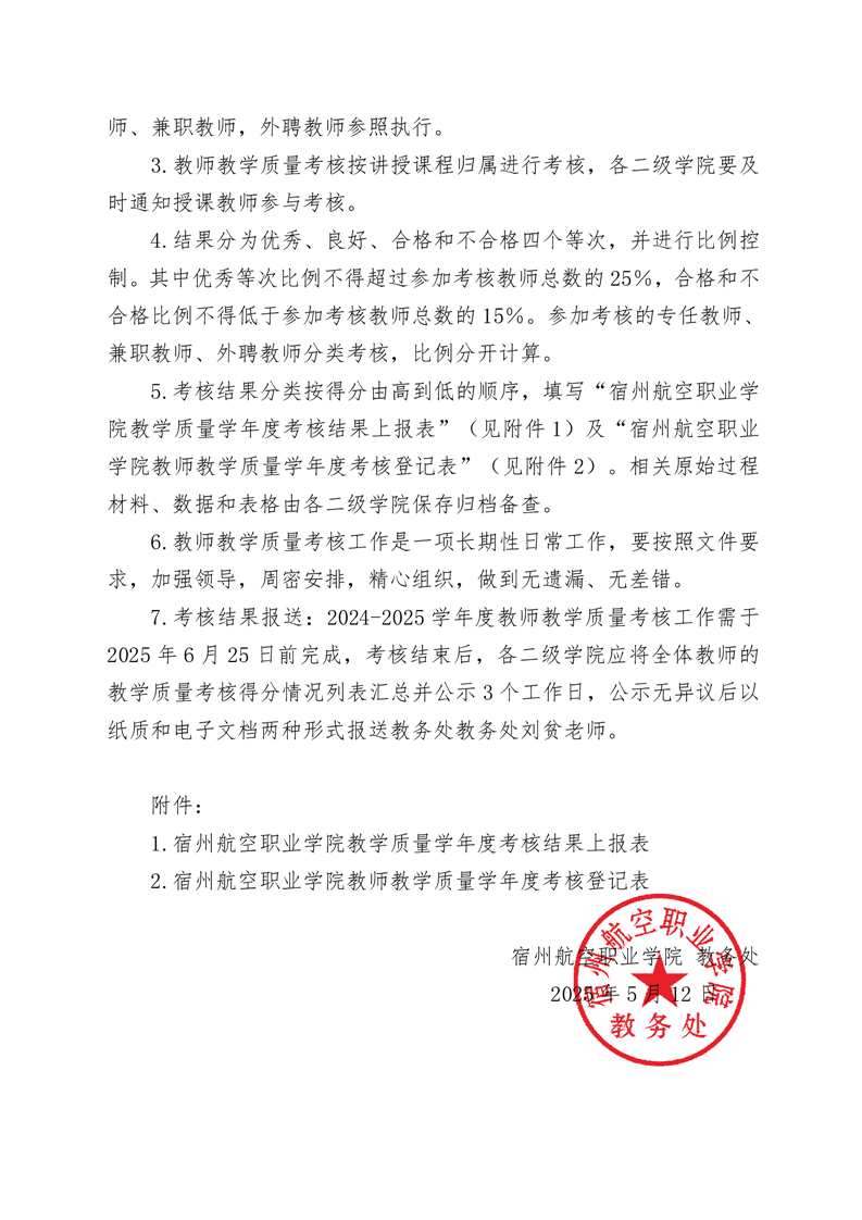关于2024-2025学年度教师教学质量考核的通知