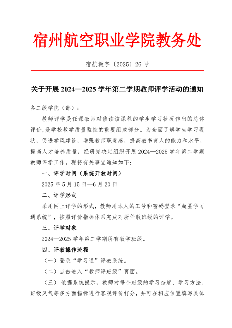 关于开展2024-2025学年第二学期教师评学的通知