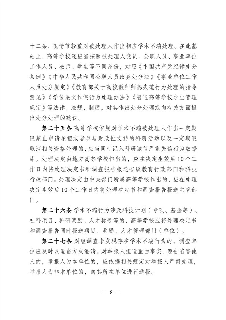 教育部关于印发 《高等学校学术不端行为调查处理实施细则》的通知