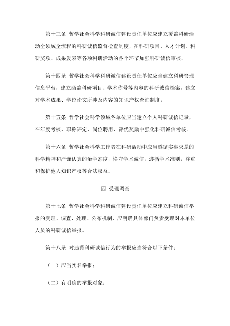 哲学社会科学科研诚信建设实施办法