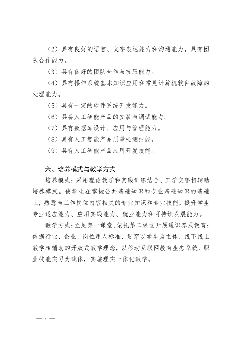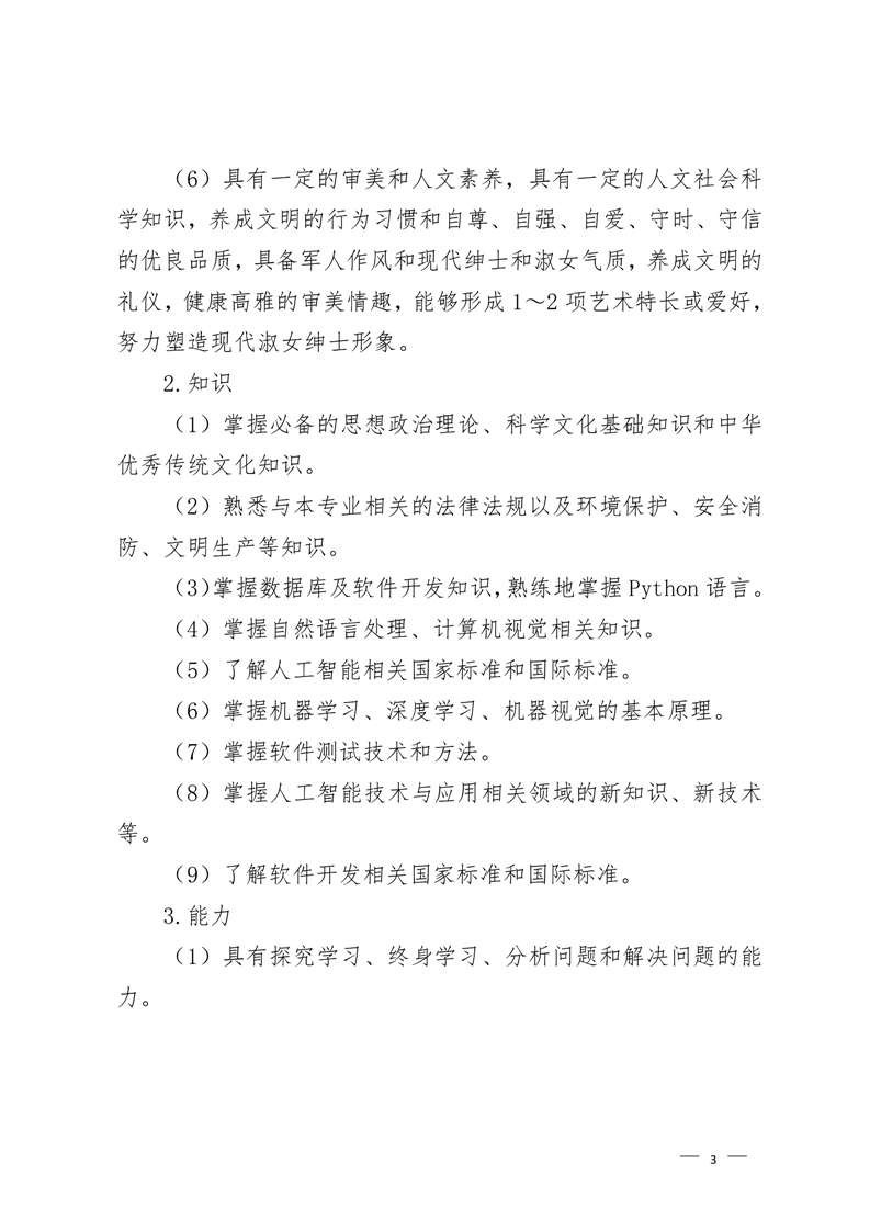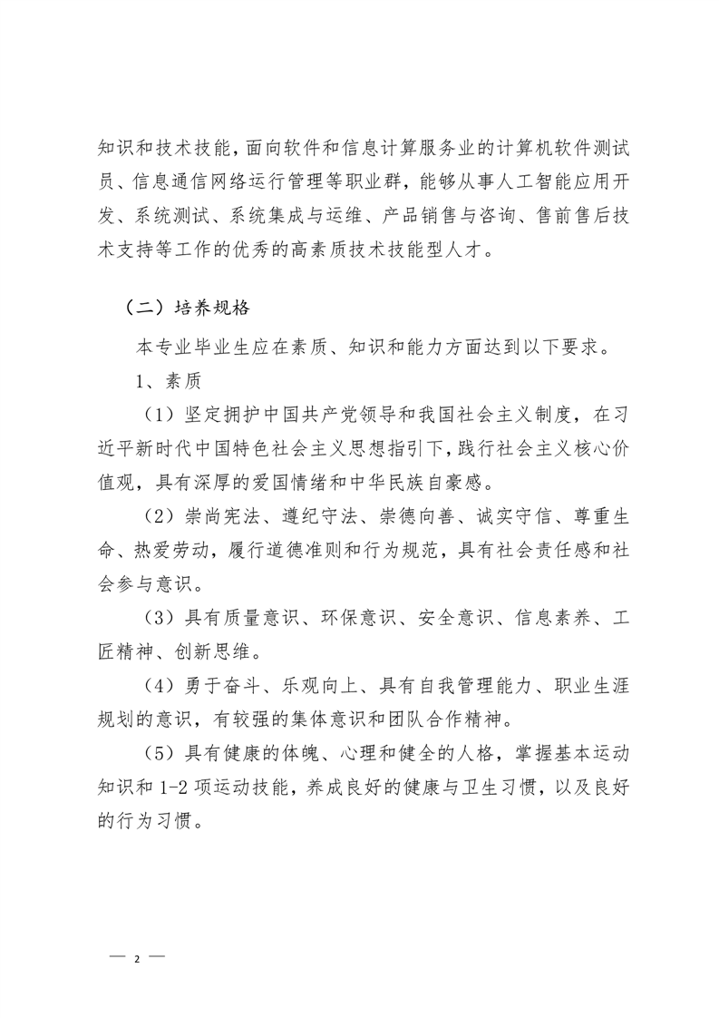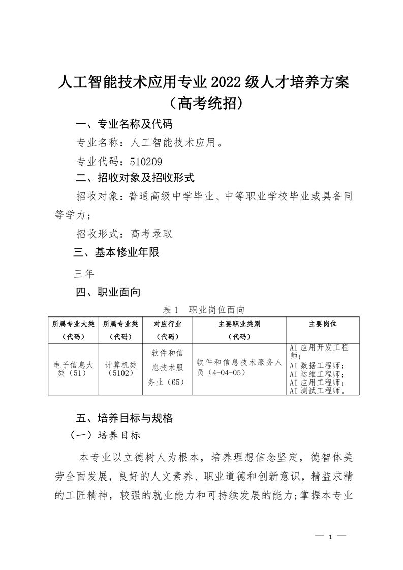 人工智能技术应用专业2022级人才培养方案 (高考统招)