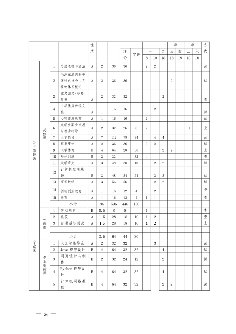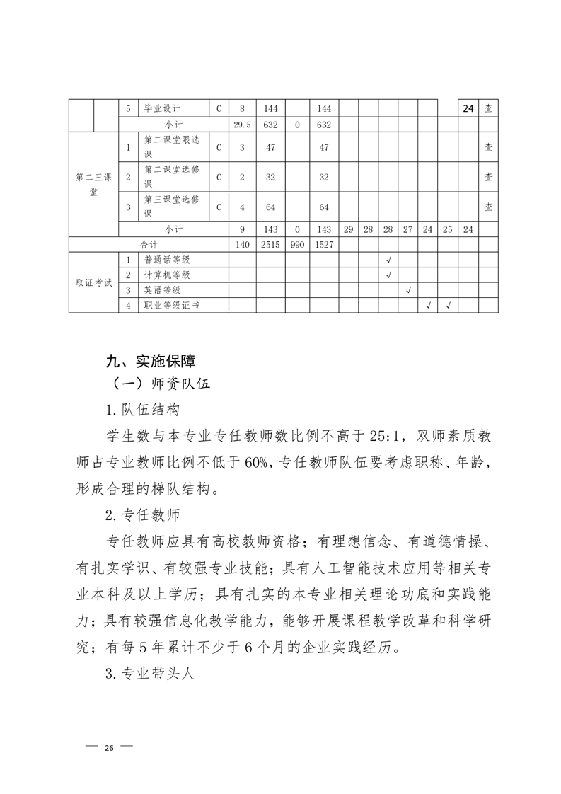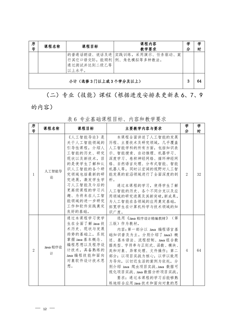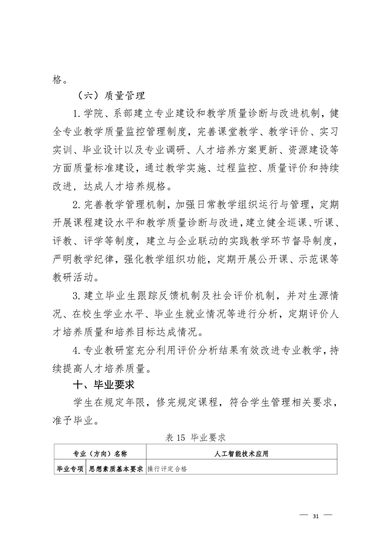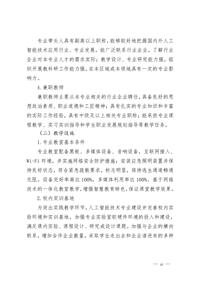 人工智能技术应用专业2022级人才培养方案 (高考统招)