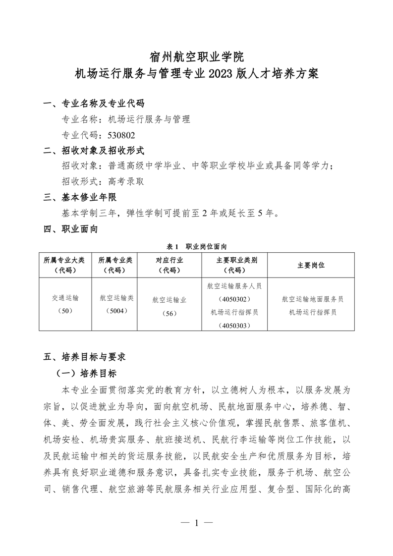 彩神Vll学院 机场运行服务与管理专业 2023 版人才培养方案