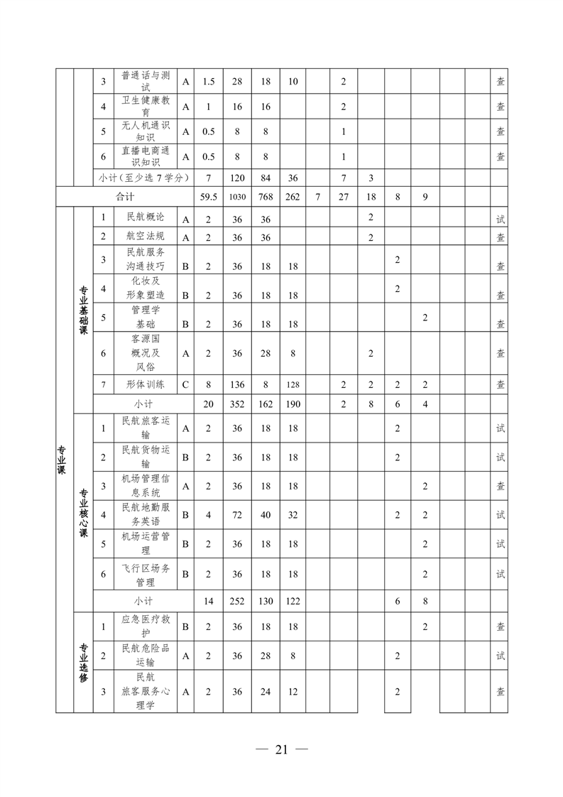 2021级定翼机驾驶技术专业人才培养方案