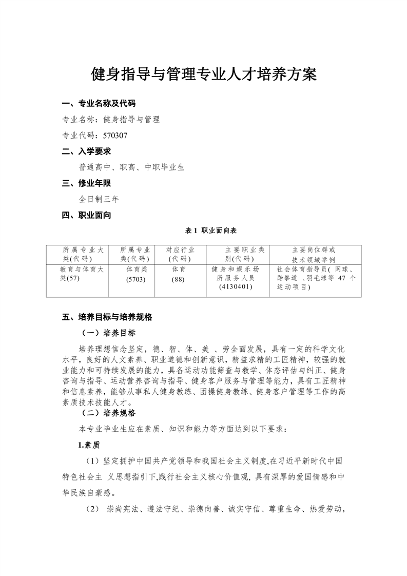 健身指导与管理专业人才培养方案