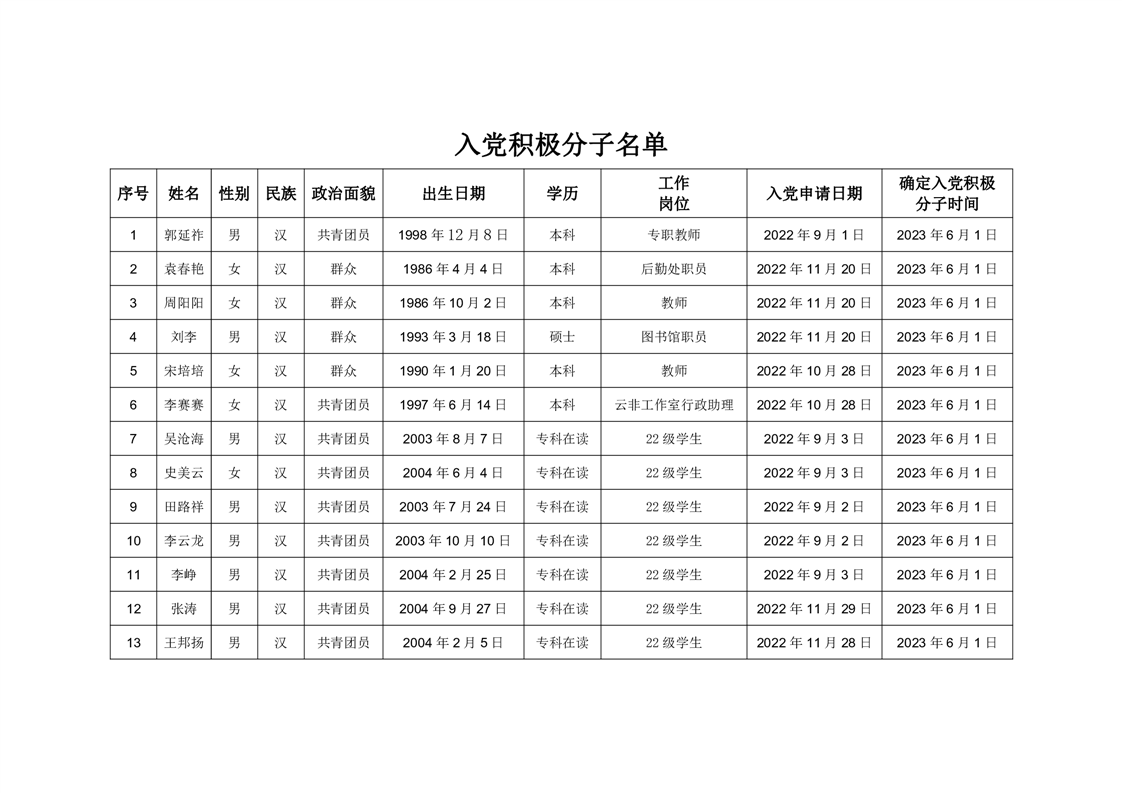 关于确定郭延祚、袁春艳🫸🏻、周阳阳等26名同志为人党积极分子的公示