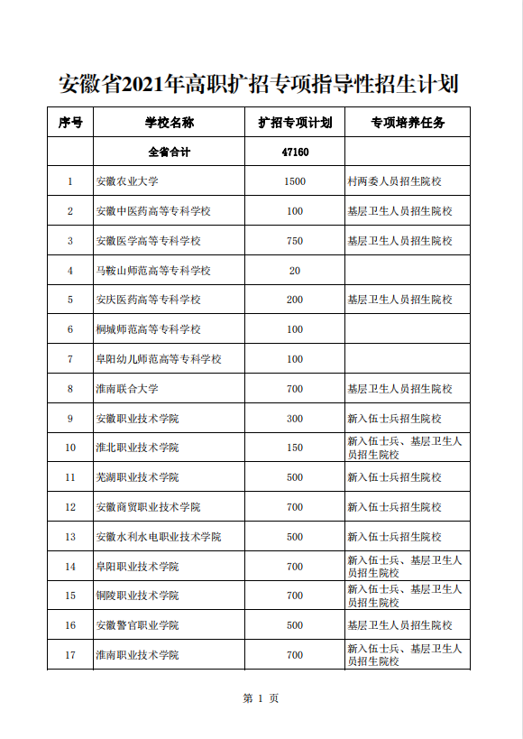 彩神Vll学院2021年普通专科分省分专业招生计划