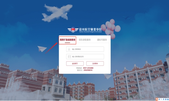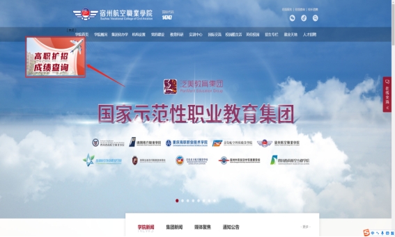 进入彩神Vll学院官网(http://www.szhkxy.com/),可点击左悬挂飘窗高职扩招成绩查询页面进入成绩查询。