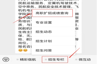 进入公众号后点击招生专栏✤,点击上方高职扩招成绩查询