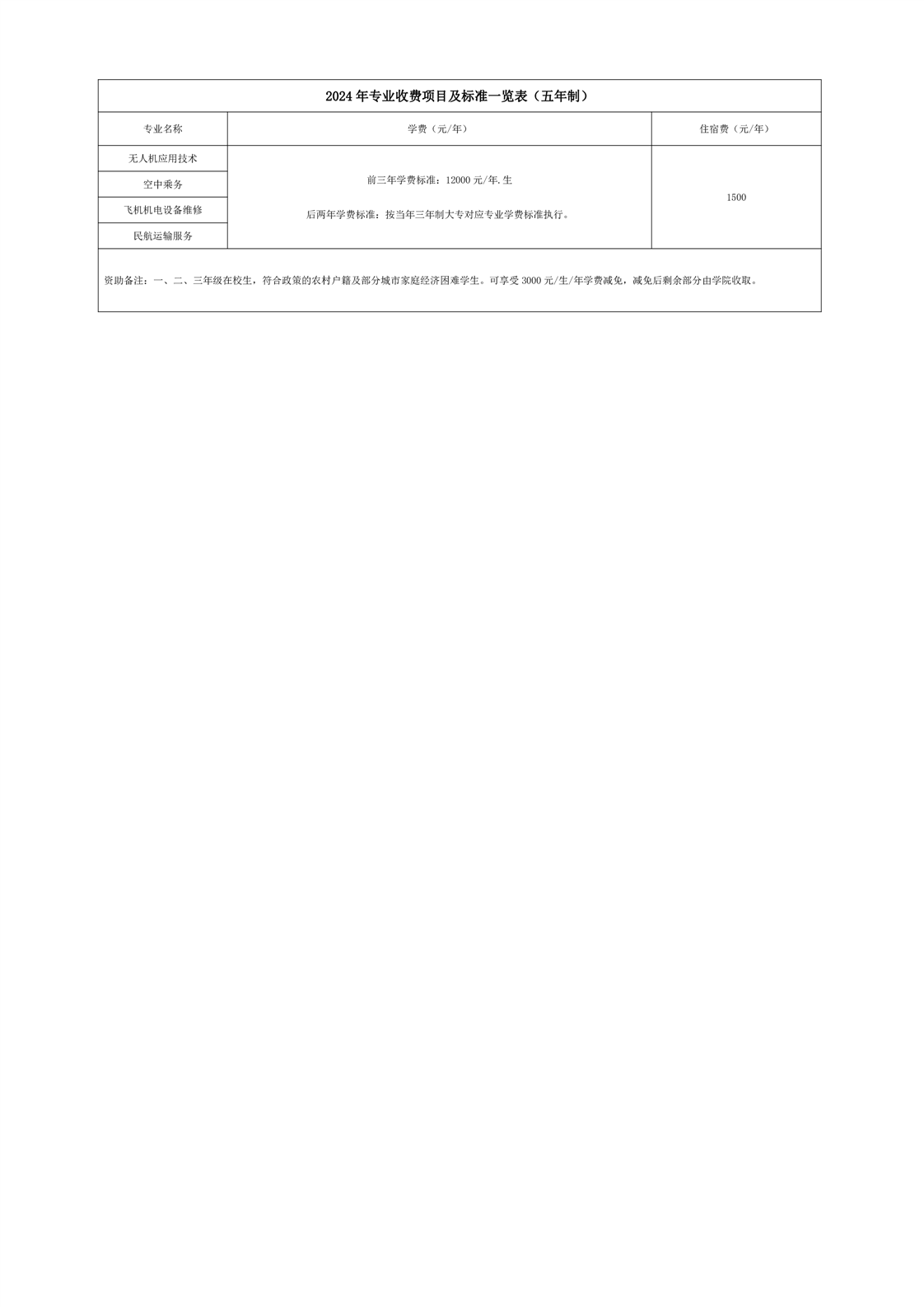 2024年专业收费项目及标准一览表(三年制)