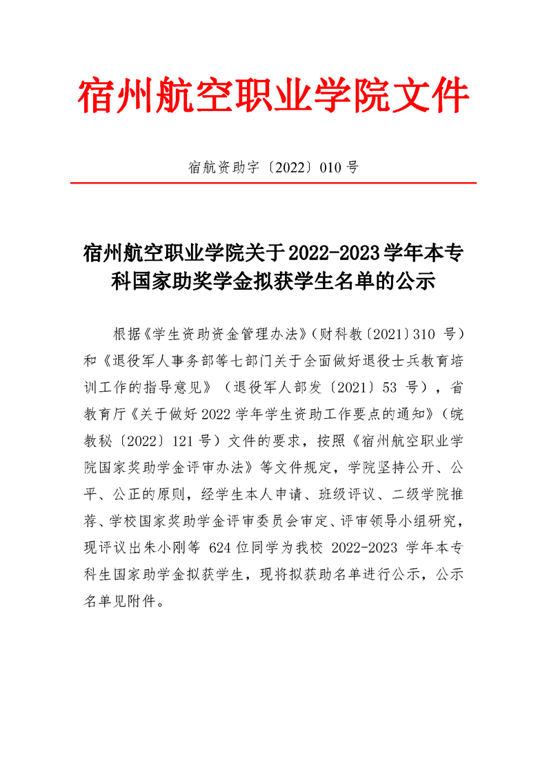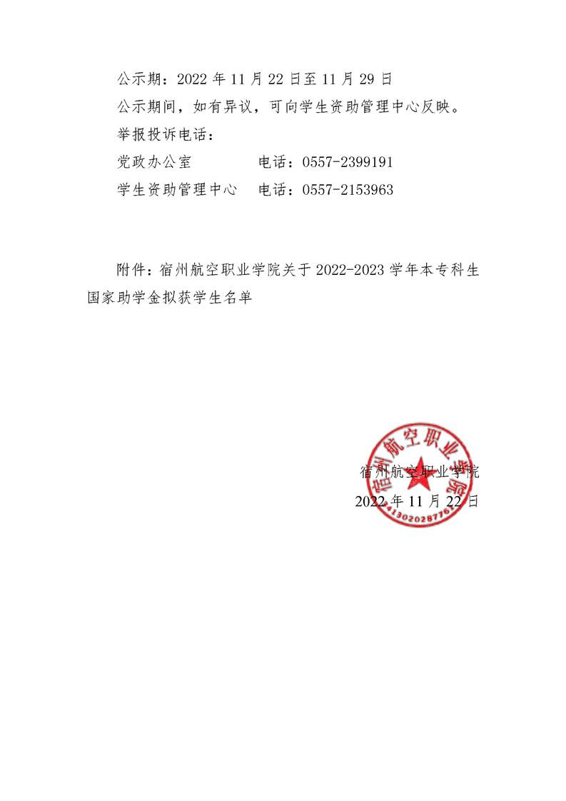 关于2022-2023学年本专科国家助学金拟获学生名单公示
