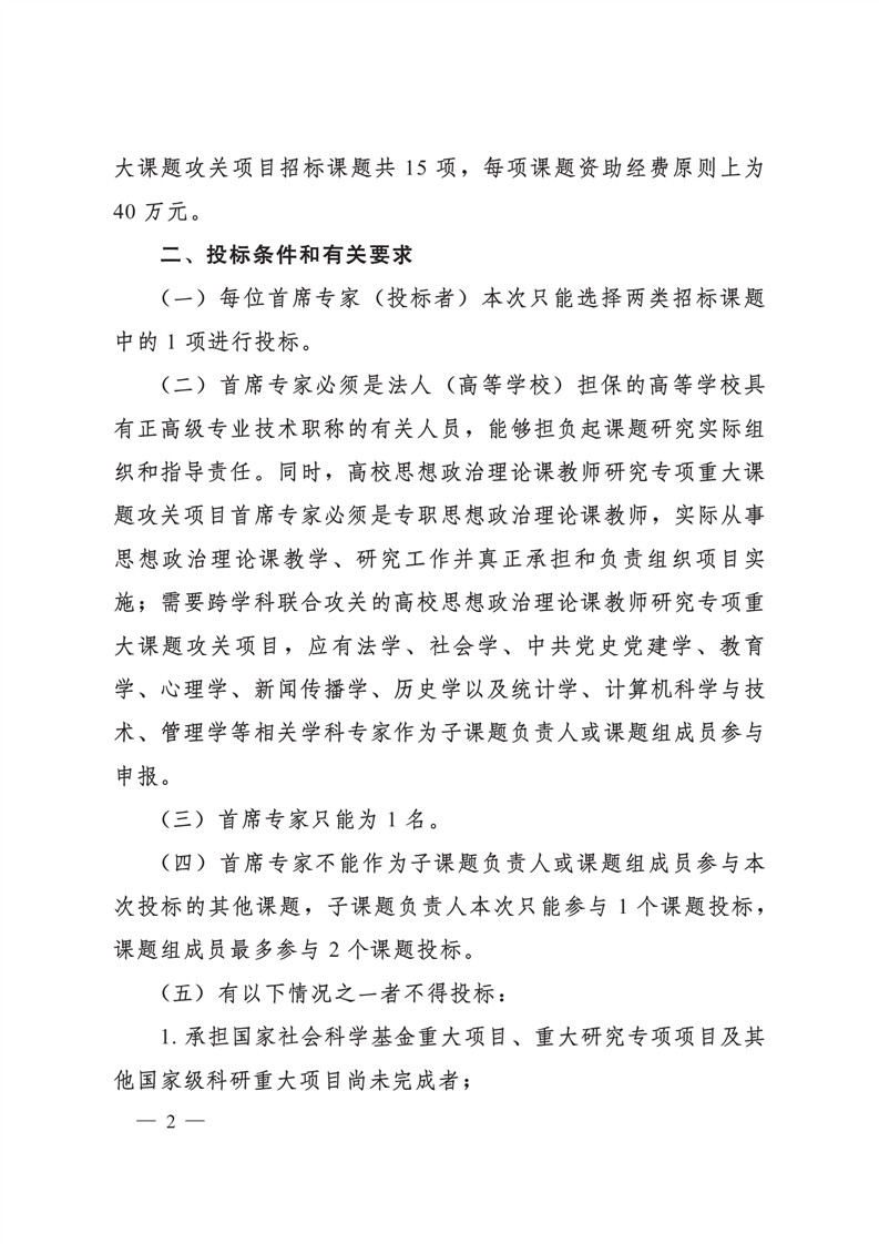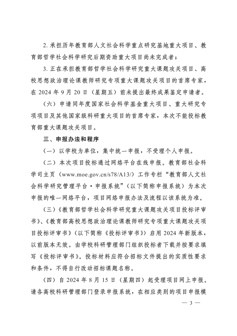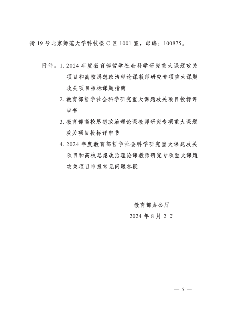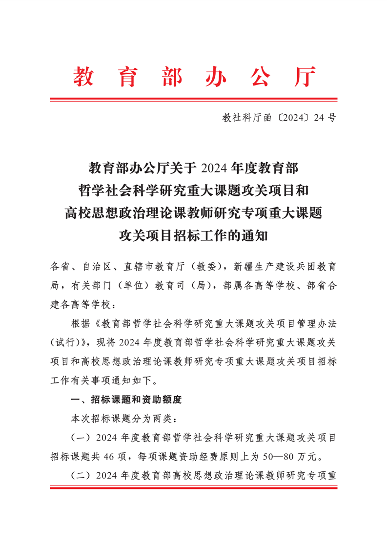 教育部办公厅关于 2024 年度教育部哲学社会科学研究重大课题攻关项目和高校思想政治理论课教师研究专项重大课题攻关项目招标工作的通知