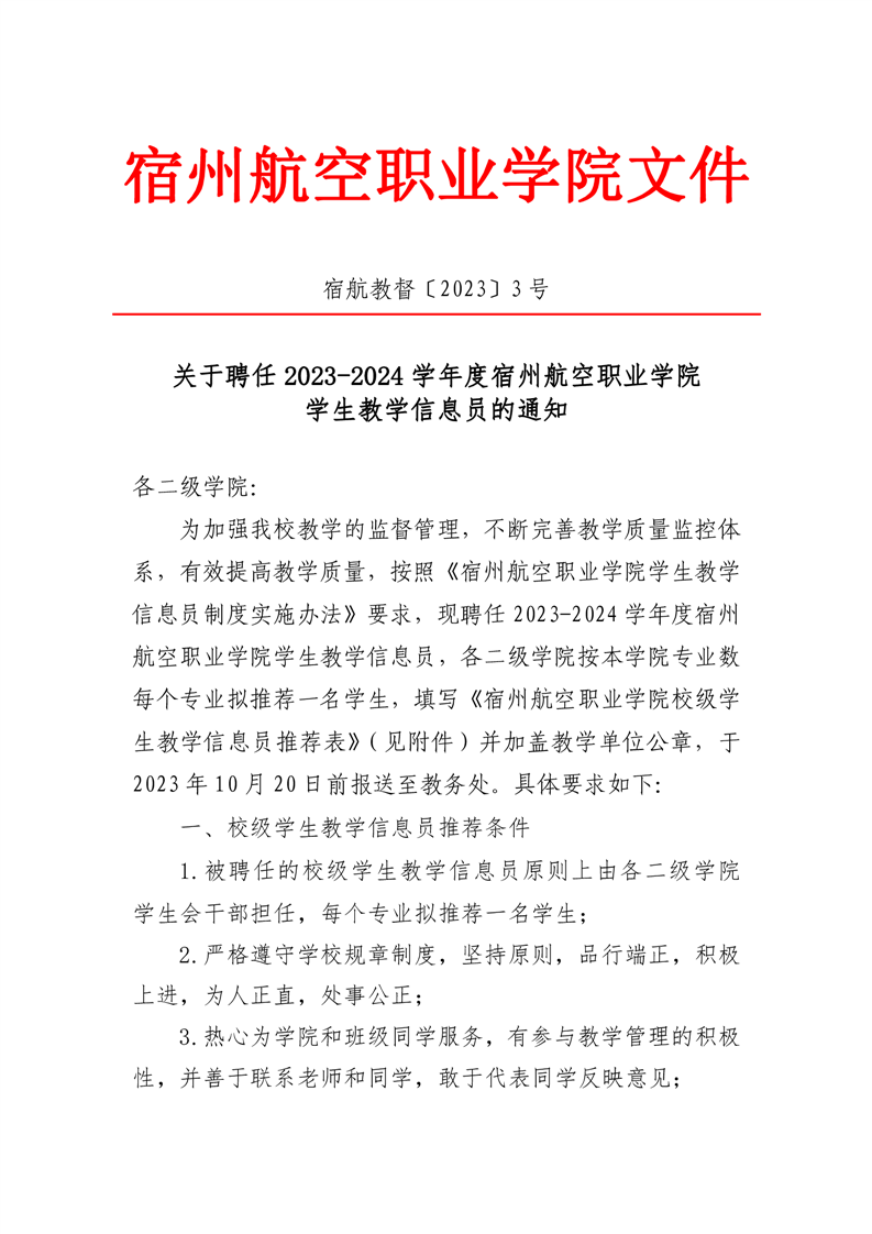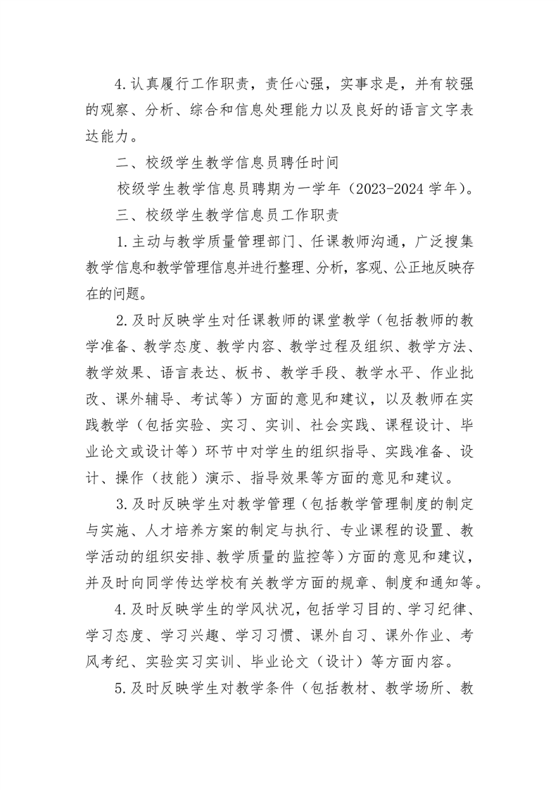 关于聘任 2023-2024 学年度彩神Vll学院学生教学信息员的通知