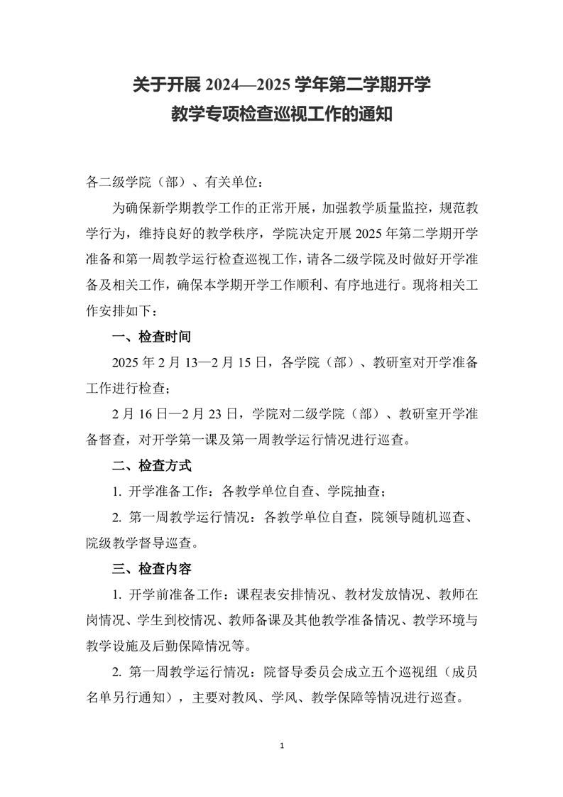关于开展2024-2025第二学期开学教学巡视的通知