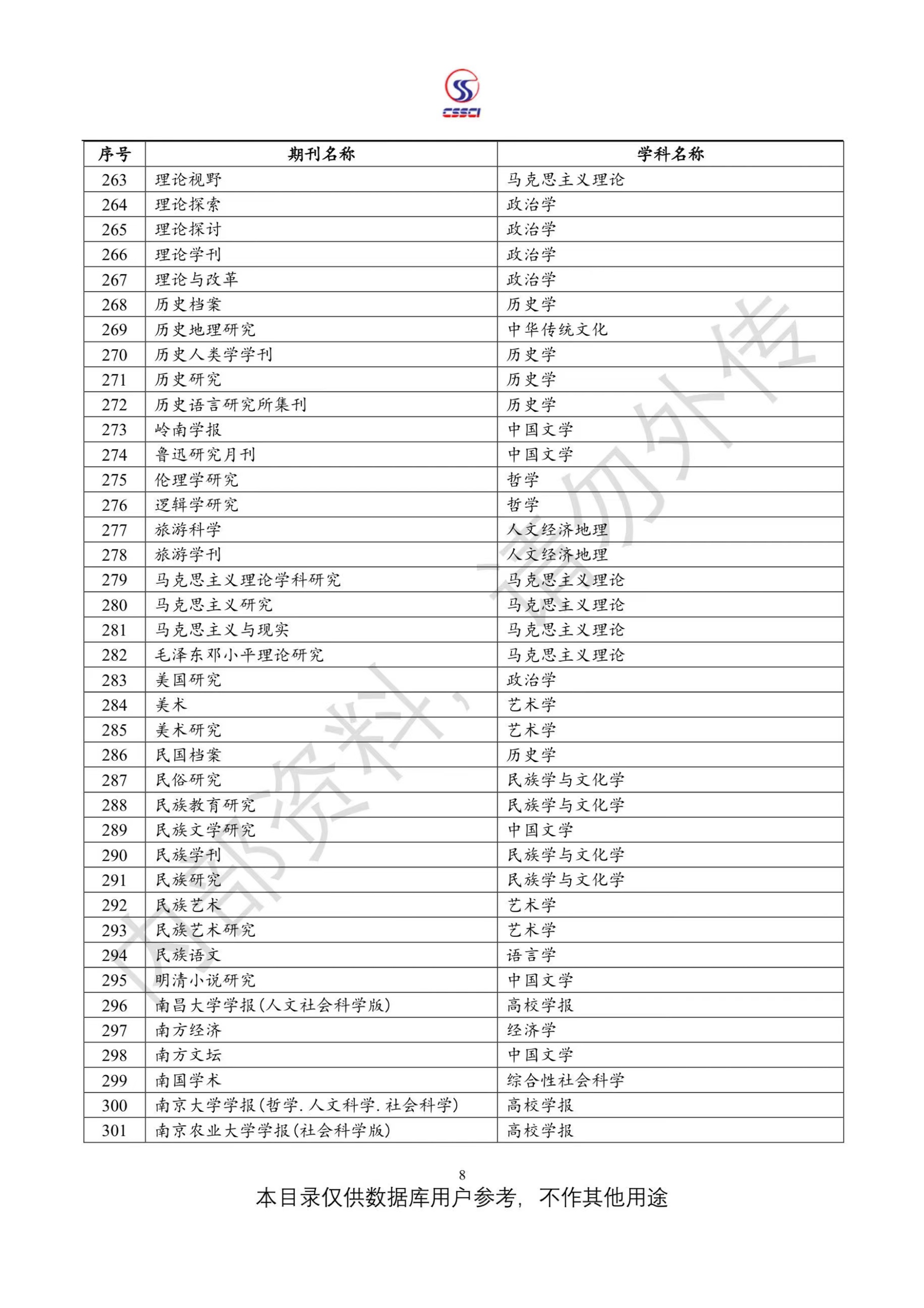 中文社会科学引文索引(CSSCI)来源期刊目录(2023-2024)