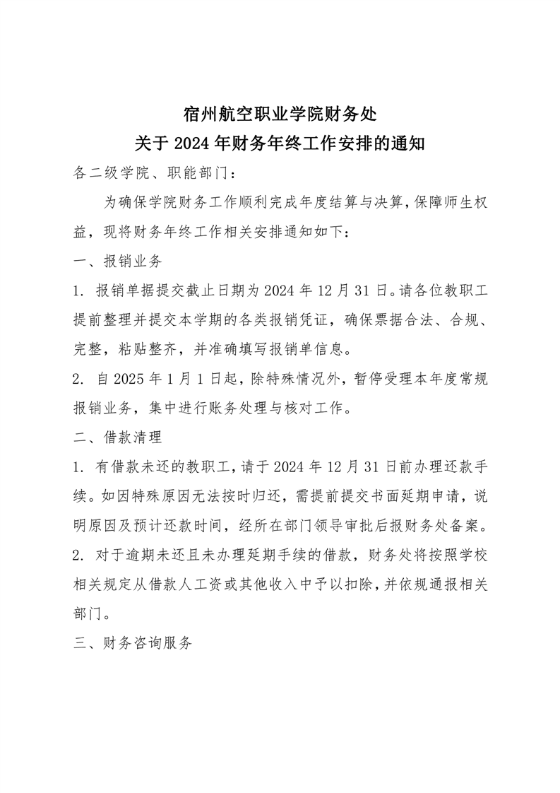 彩神Vll学院财务处 关于2024年财务年终工作安排的通知