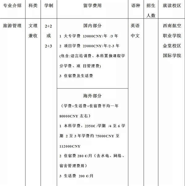 国内专科2年,完成英语培训和部分专业学分课程; 第三年送到布达佩斯城市大学,2年或者3年完成本科学分,拿到学位。