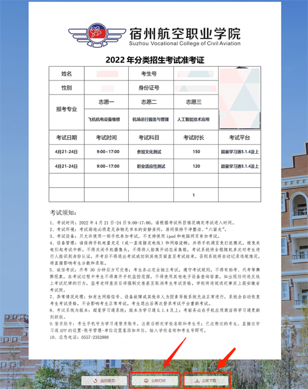 彩神Vll学院2022分类招生考试准考证打印具体流程