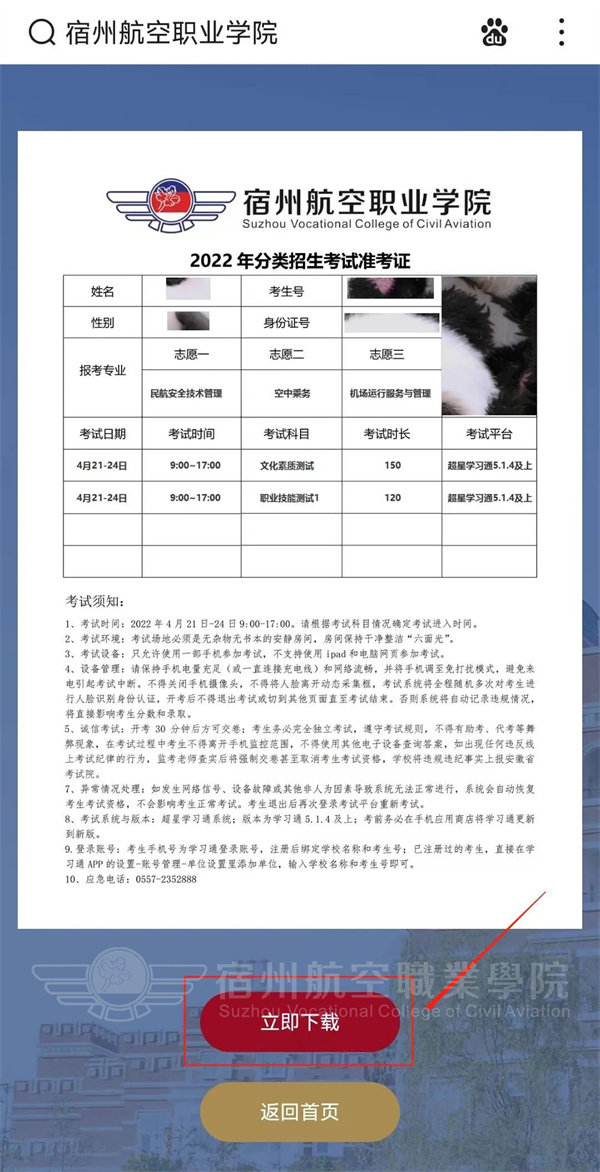 3.登录后🏬,请考生仔细核对个人信息,核对无误后,点击下方“立即下载”,下载完成后,即可保存图片,打印准考证了。
