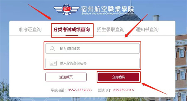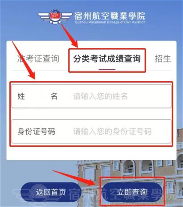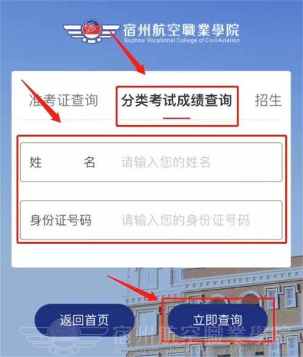 2.进入后点击“分类考试成绩查询”,根据提示填写“姓名”及“身份证号码”,填写正确后,点击下方“立即查询”;