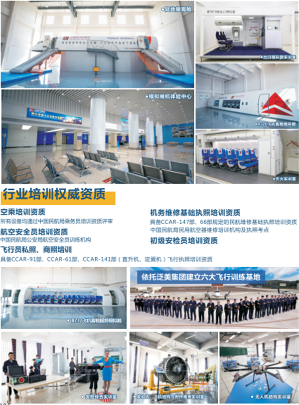 引进行业专家和IATA课程🕺🏽,拥有各类行业培训资质📕。航空实训中心配置领先的航空实训设备,飞行基地与100余架飞机保障训练,稳定的校外实训实习基地确保专业培训与行业无缝对接。
