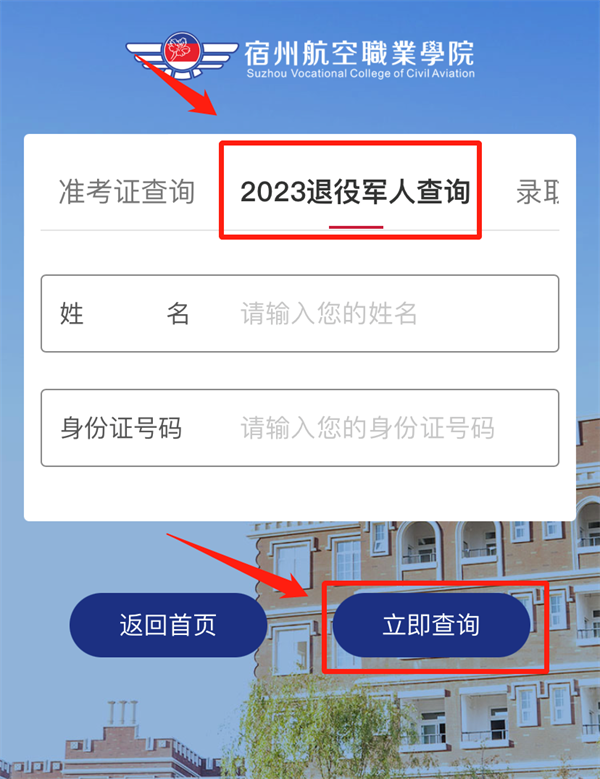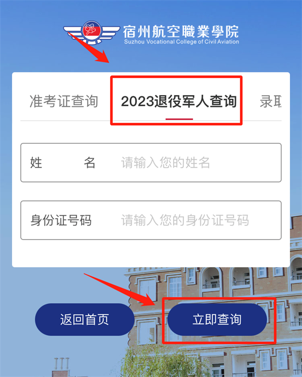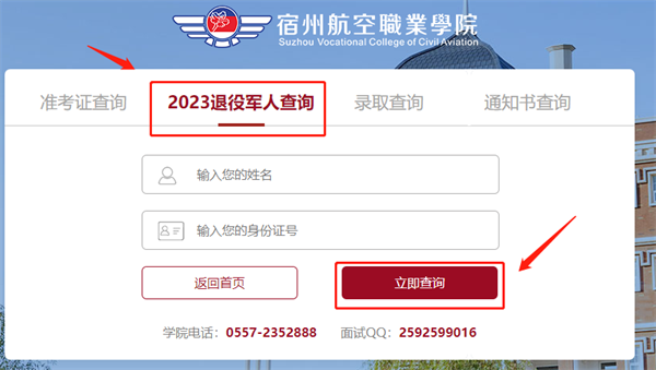 2.进入后,点击“2023退役军人查询”📤,根据提示填写学生姓名及身份证号码,填写正确后,点击“立即查询”⚧🔩,即可查看资格审核结果🙇🏿♂️;