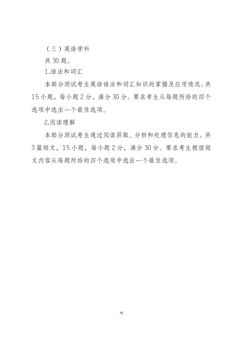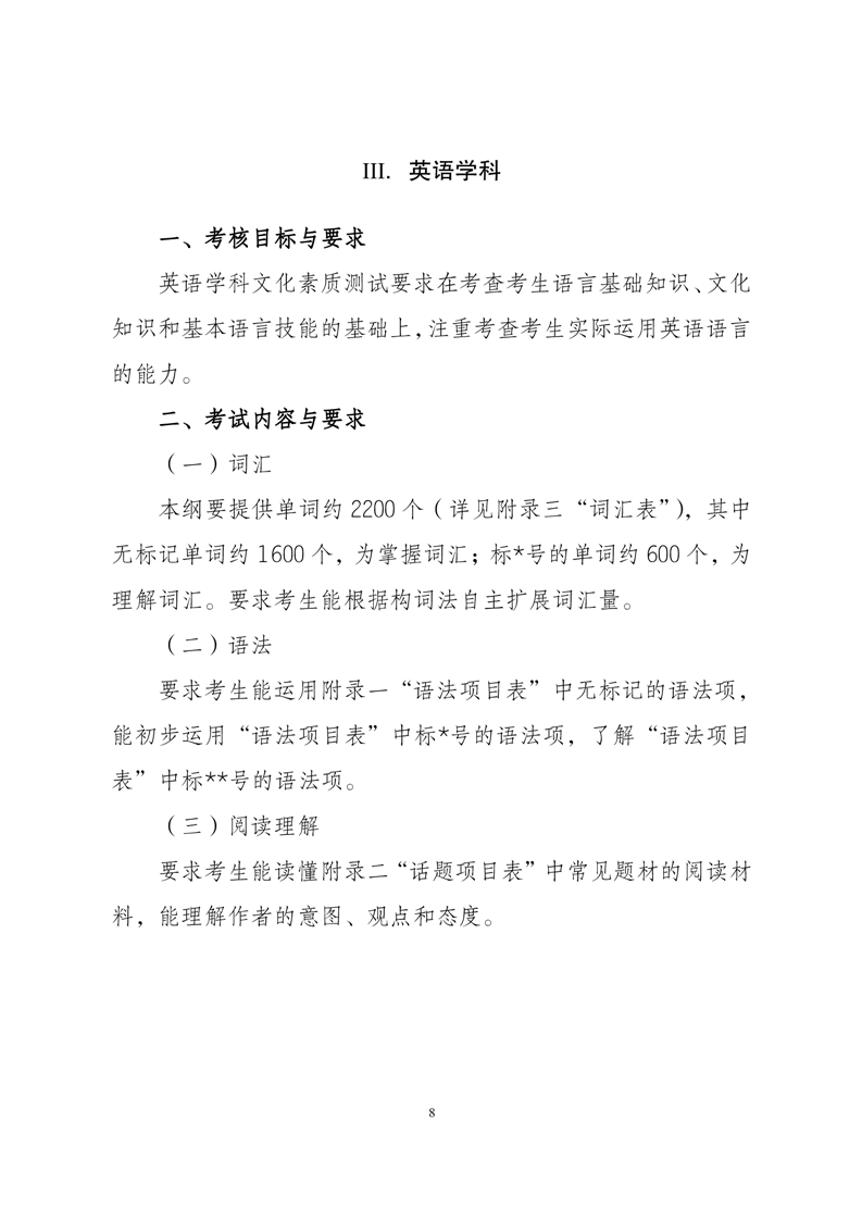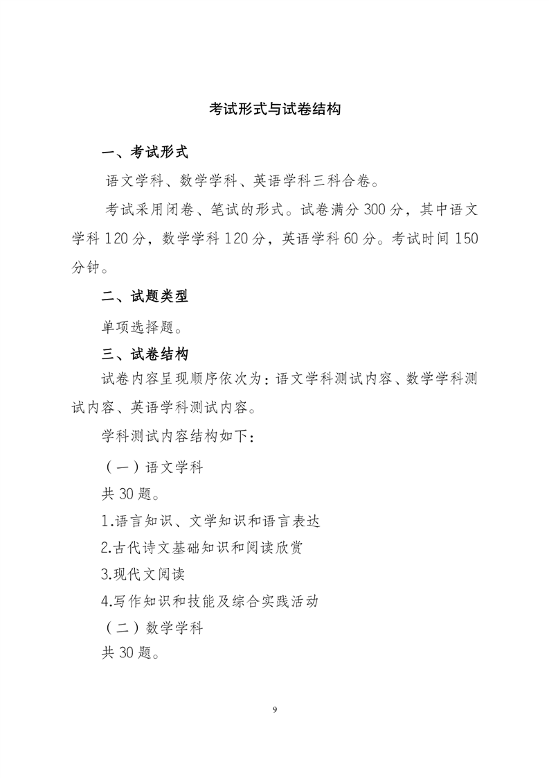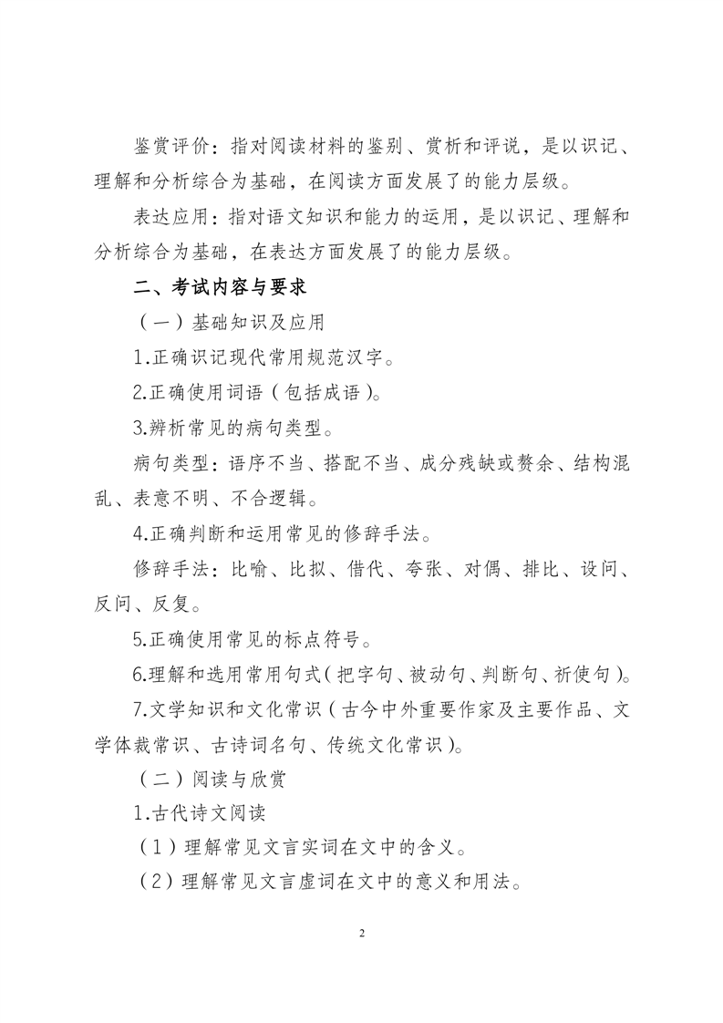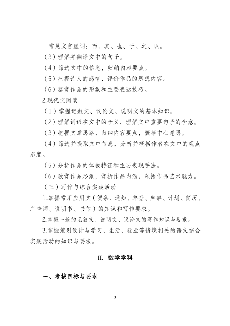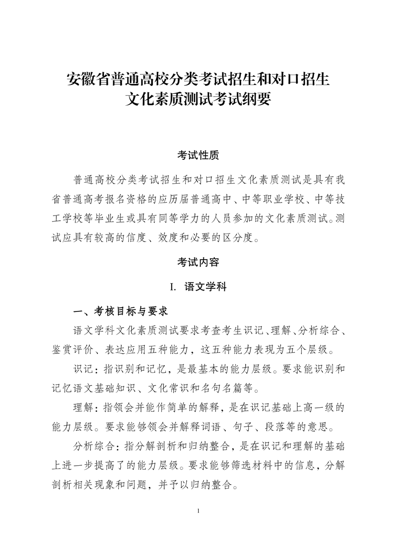 2024年安徽省普通高校分类考试招生和对口招生文化素质测试考试纲要