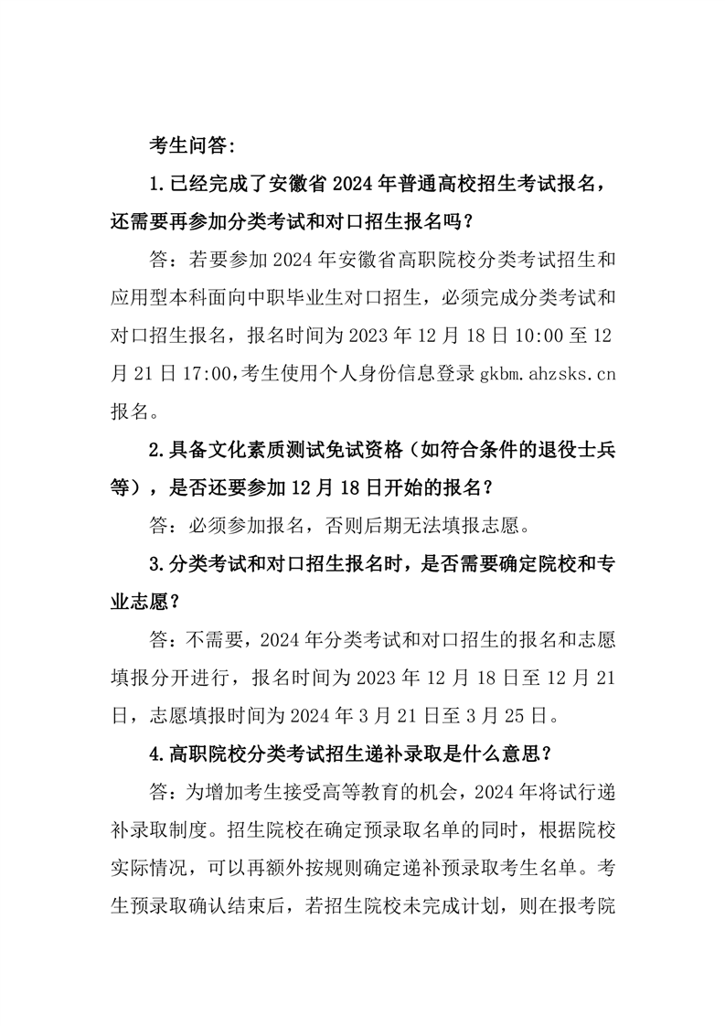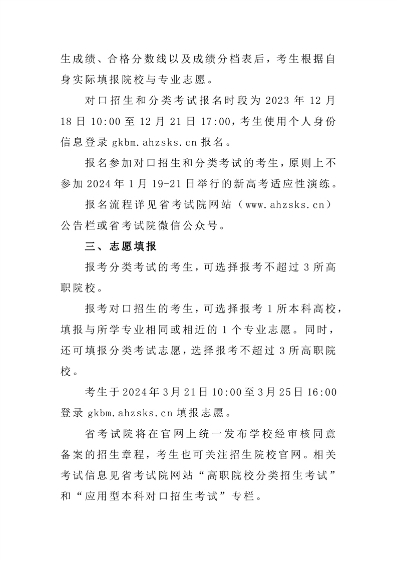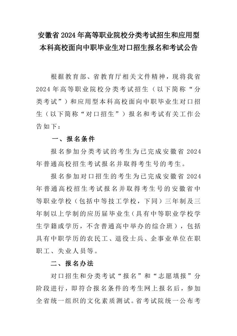安徽省2024年高等职业院校分类考试招生和应用型本科高校面向中职毕业生对口招生报名和考试公告