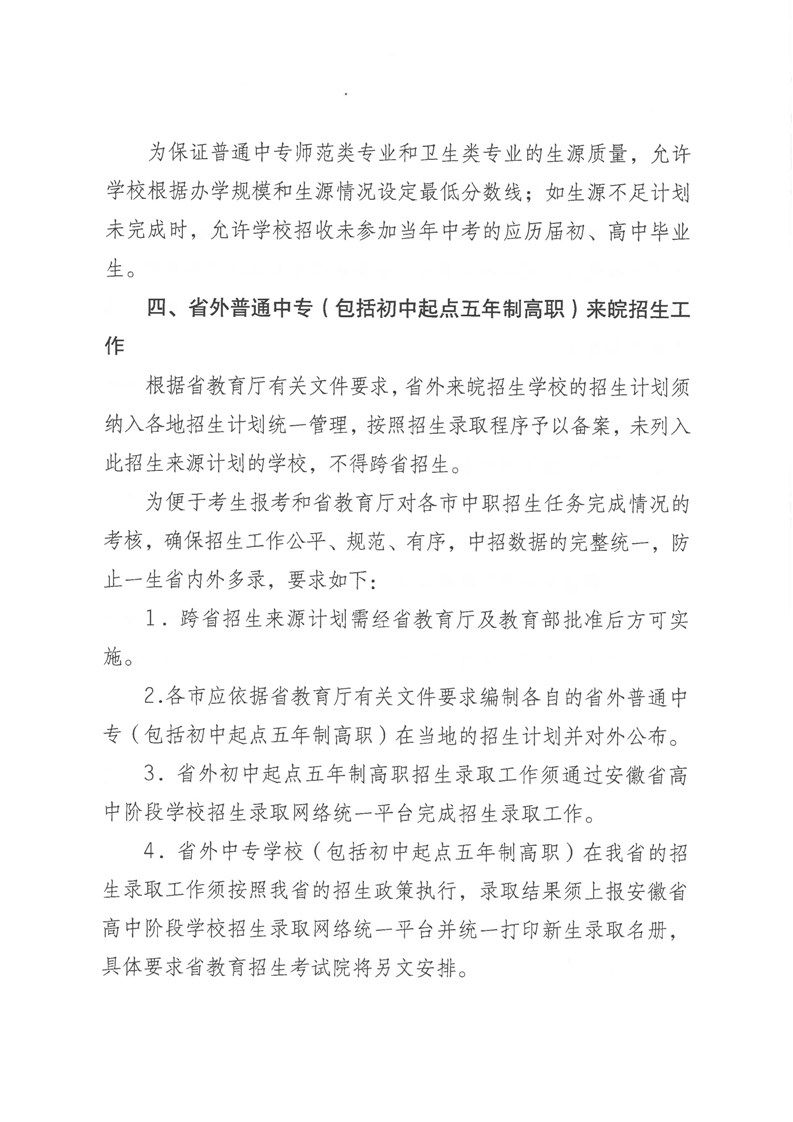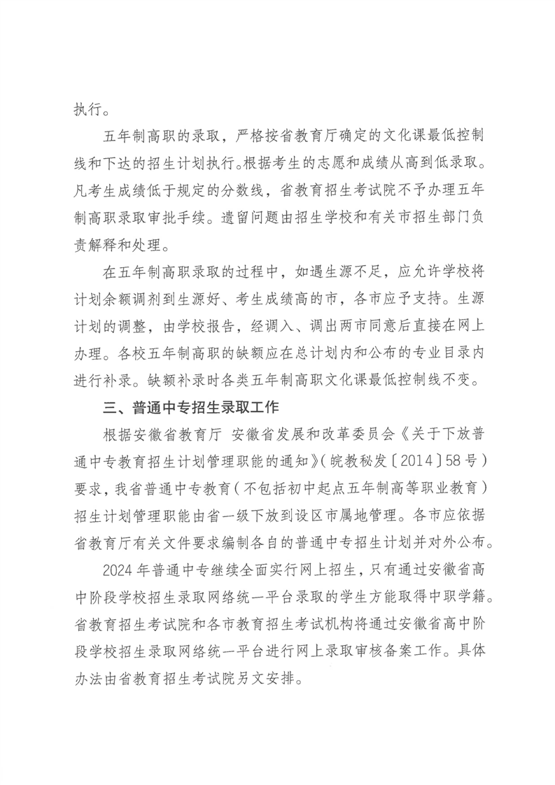 安徽省教育招生考试院关于2024年五年制高职和普通中专录取事项的通知