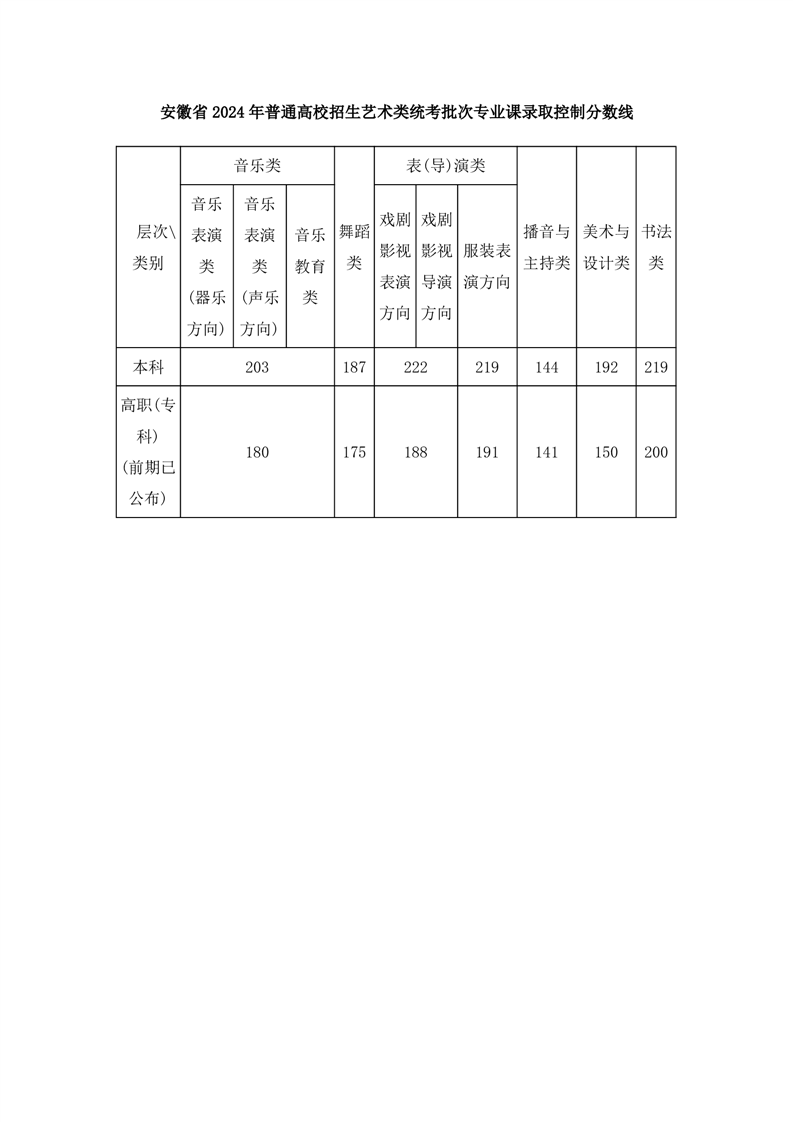 关于公布安徽省2024年普通高校招生录取控制分数线的公告