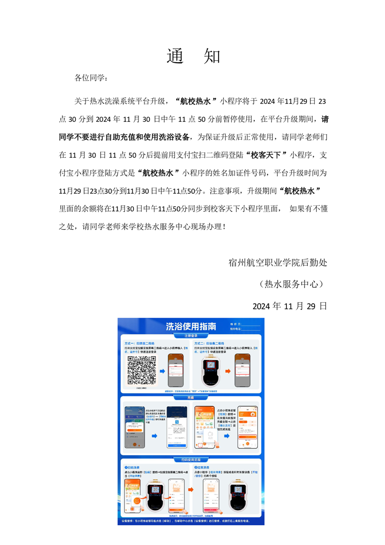 彩神Vll学院热水升级服务通知