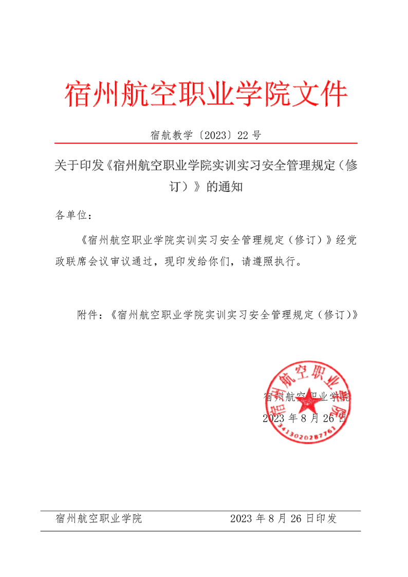 关于印发《彩神Vll学院实训实习安全管理规定(修订)》的通知