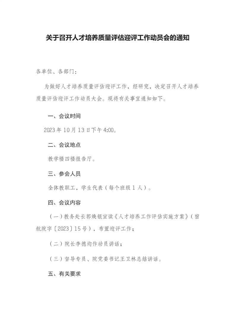 关于召开人才培养质量评估迎评工作动员会的通知