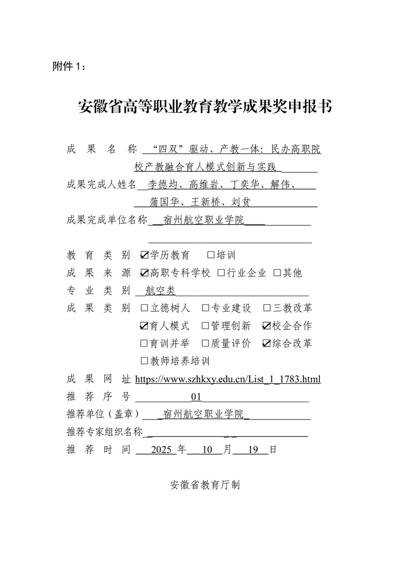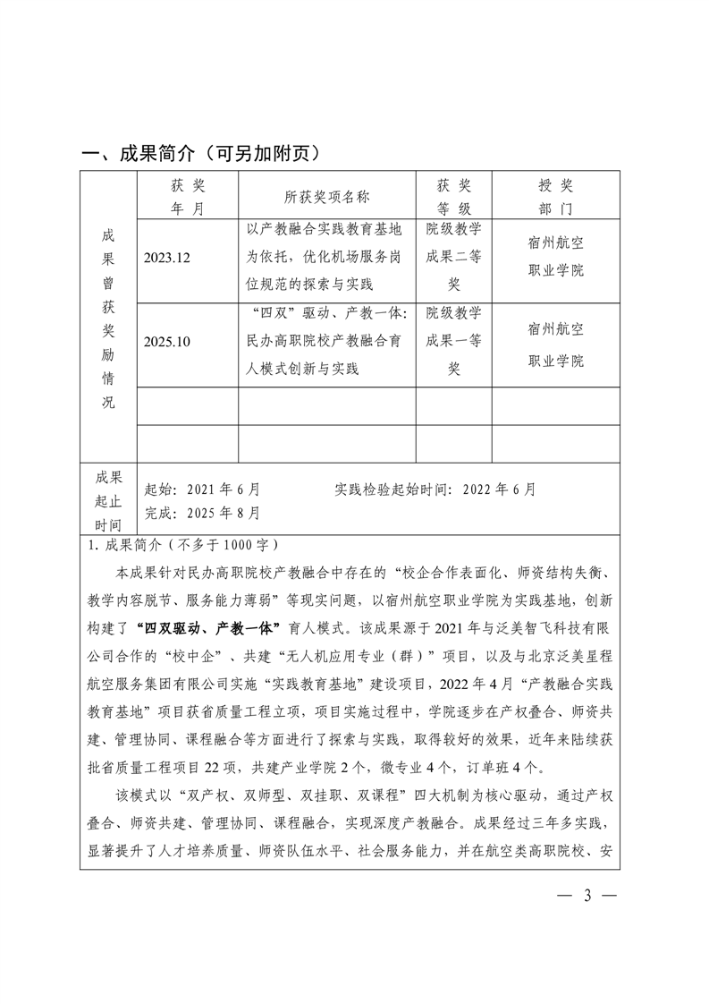 《四双驱动 产教一体𓀘,民办高职院校产教融合育人模式创新与实践》申报书