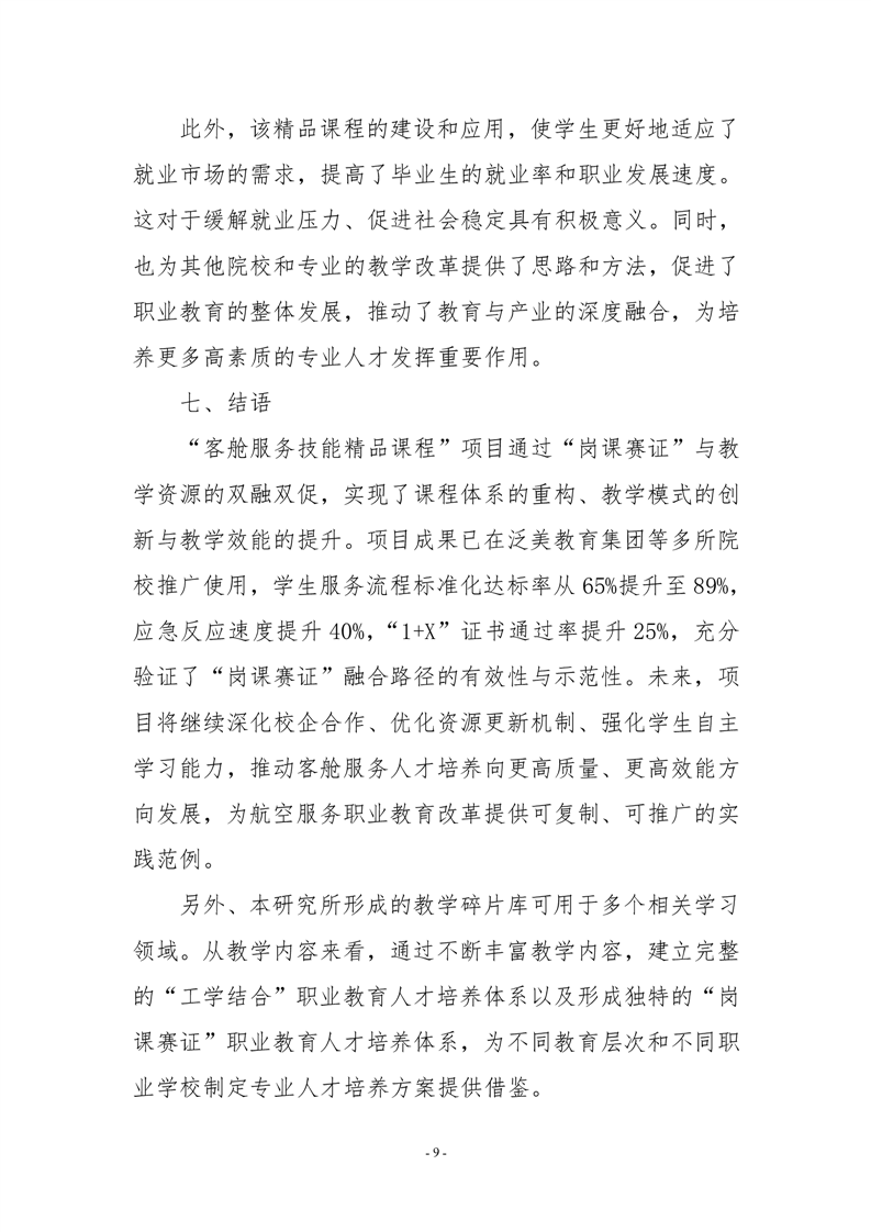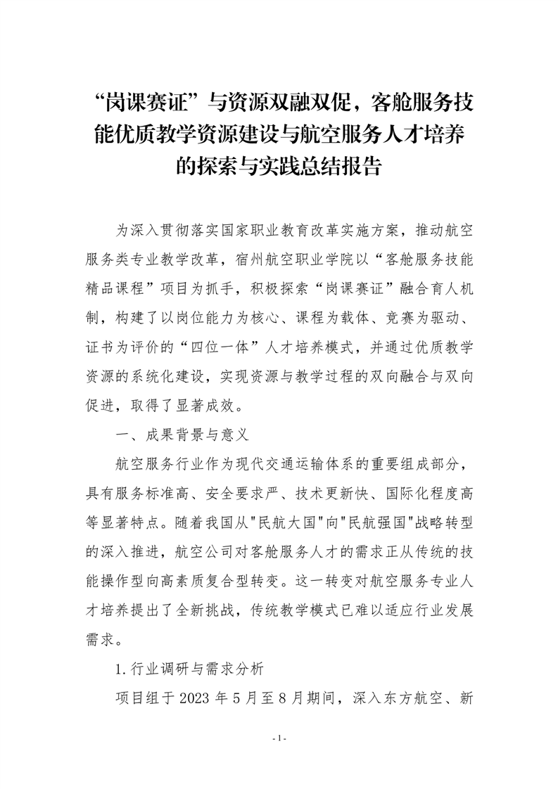 “岗课赛证”与资源双融双促👶🏿,客舱服务技能优质教学资源建设与航空服务人才培养的探索与实践总结报告